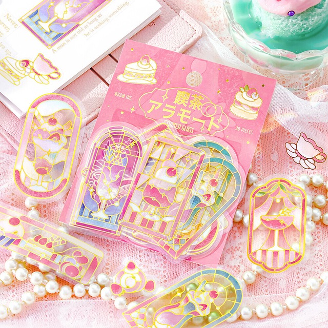 大人気の喫茶アラモードシリーズに、ステンドグラス風シールが登場! レトロな喫茶店にあるステンドグラスのような、透明感とレトロ感がかわいいステッカーです。 様々な形のシールが入っているので、組み合わせて使いやすいアイテム。 涼しげな雰囲気で、夏にもぴったり。 10デザイン×3枚 30枚入り 素材:PET メーカー:BGM/ビージーエム 【ご購入の前にショップ情報(Webサイトの場合はABOUTタブ)より、ショッピングガイドのご確認をお願いいたします】 シール/ステッカー/デコ/コラージュ/淡色/手帳デコ/ジャーナル/かわいい/レトロ クリアステッカー/クリアシール/フレークシール/スイーツ/ステンドグラス パーラー/喫茶店/カフェ/喫茶アラモード/ケーキ/パフェ/PET パステル/かわいいシール/大人かわいい/デコ素材/ピンク