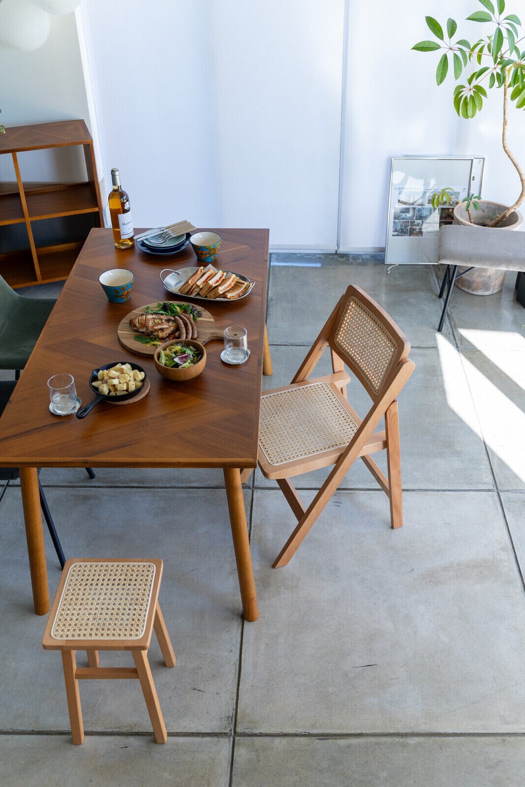 座/張り材:天然木(ラタン) 塗装、ナイロンシート