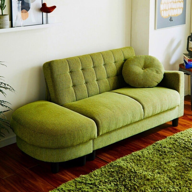配置を変えるだけでフットスツールとしても使えるので、脚を伸ばして座るときにも便利です。