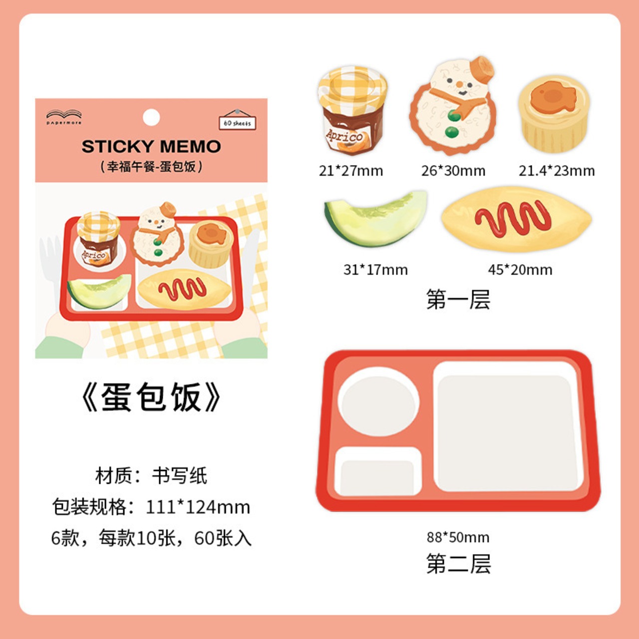 トレーと食べものの付箋が分かれているので、