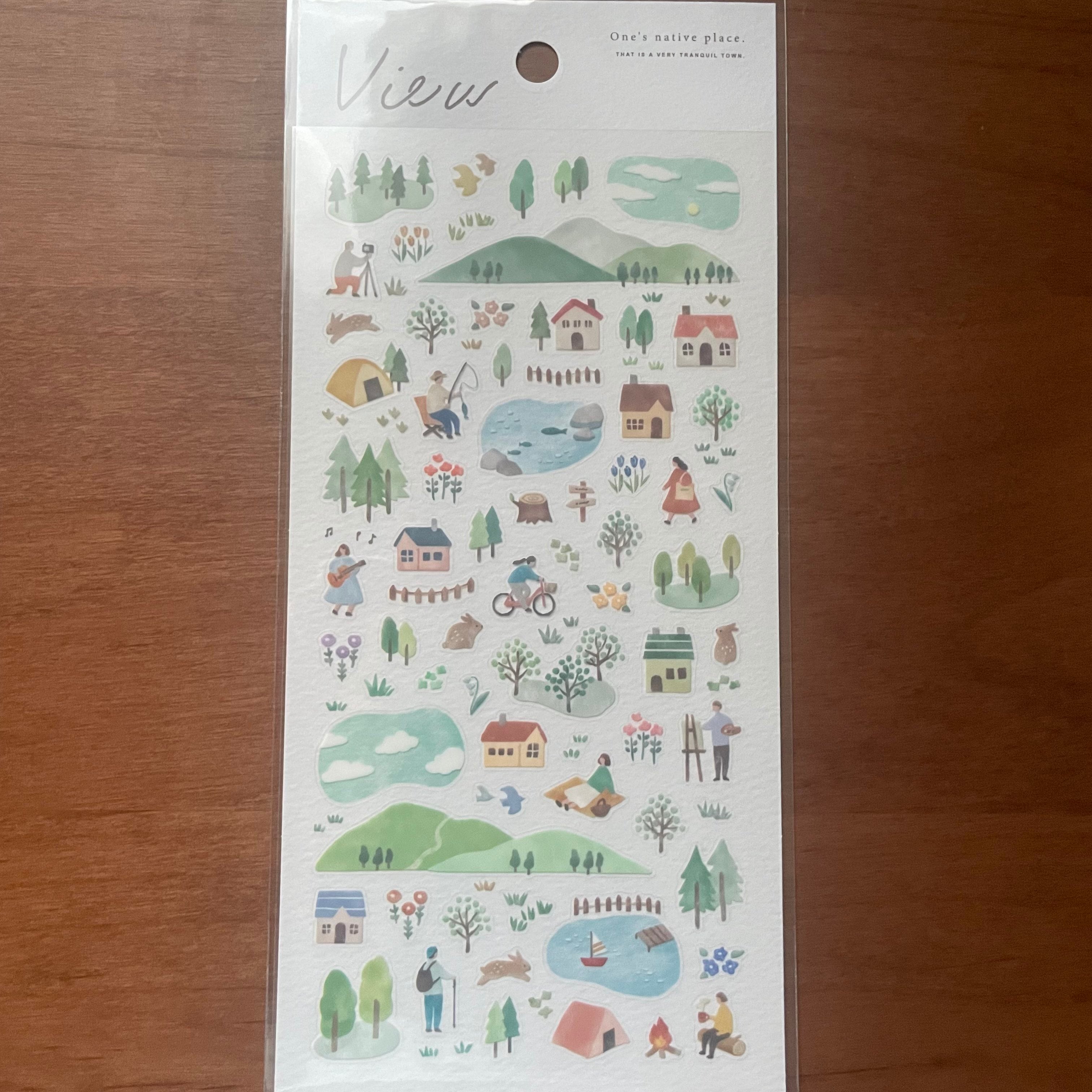 時間帯によって移り変わる景色を描いたイラストシールです。