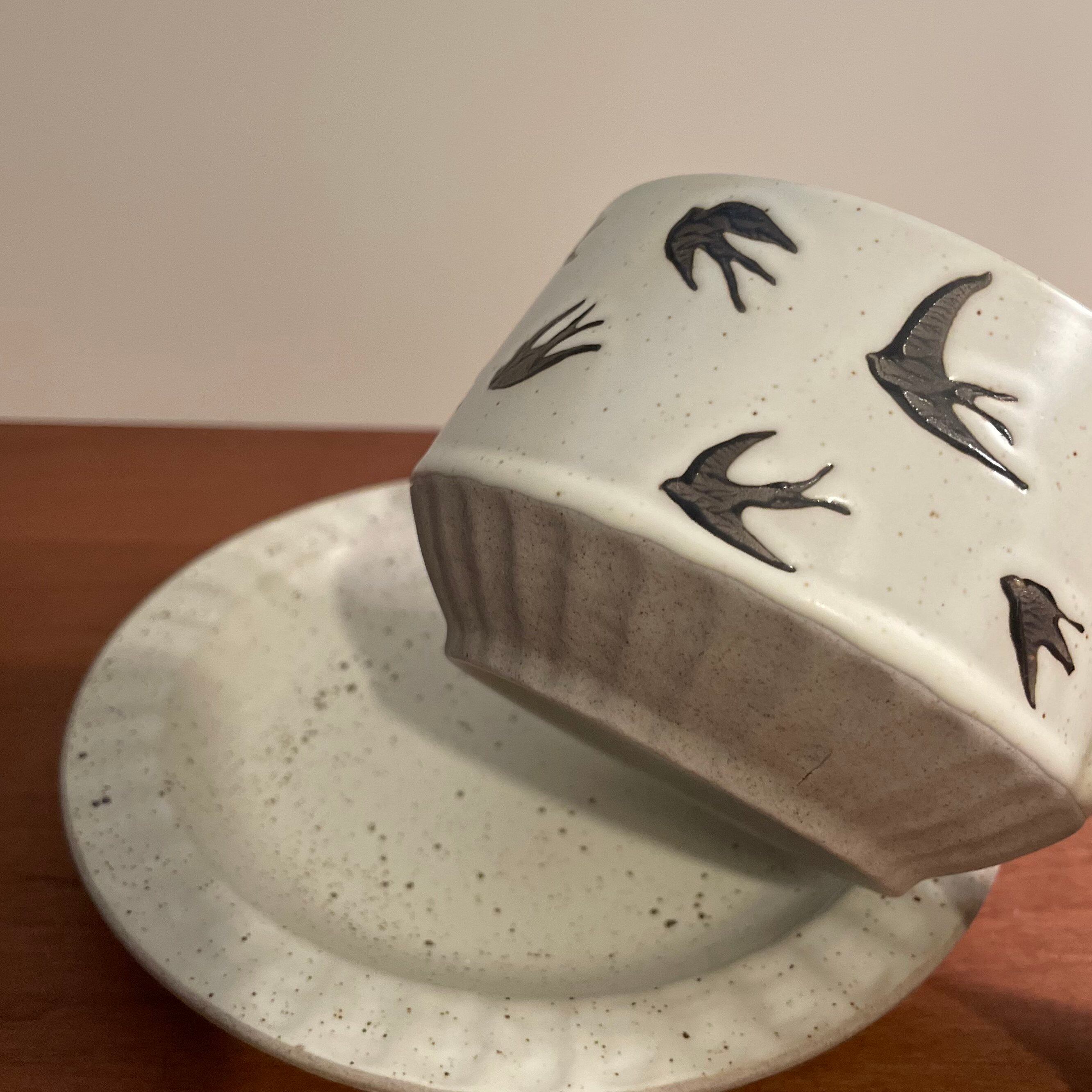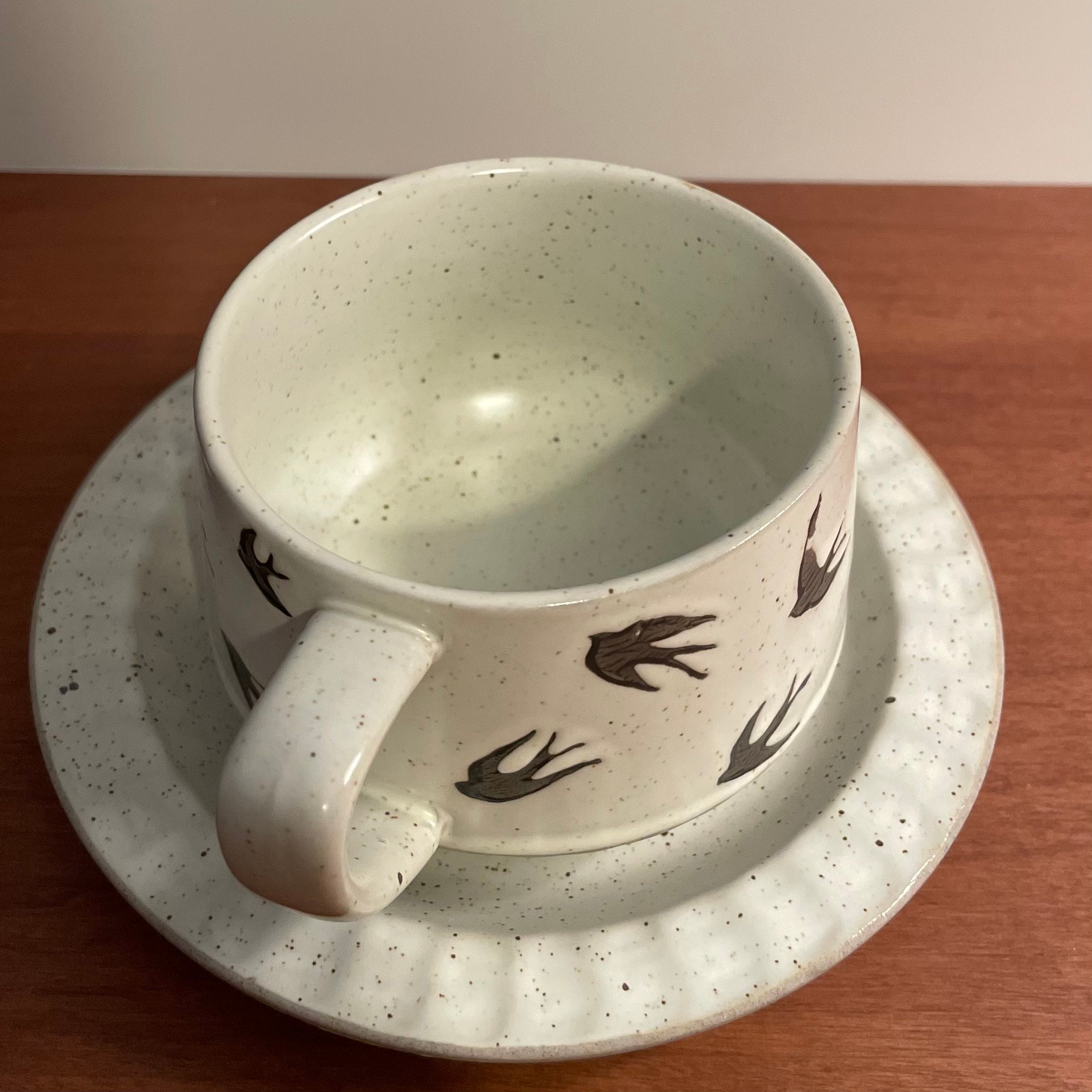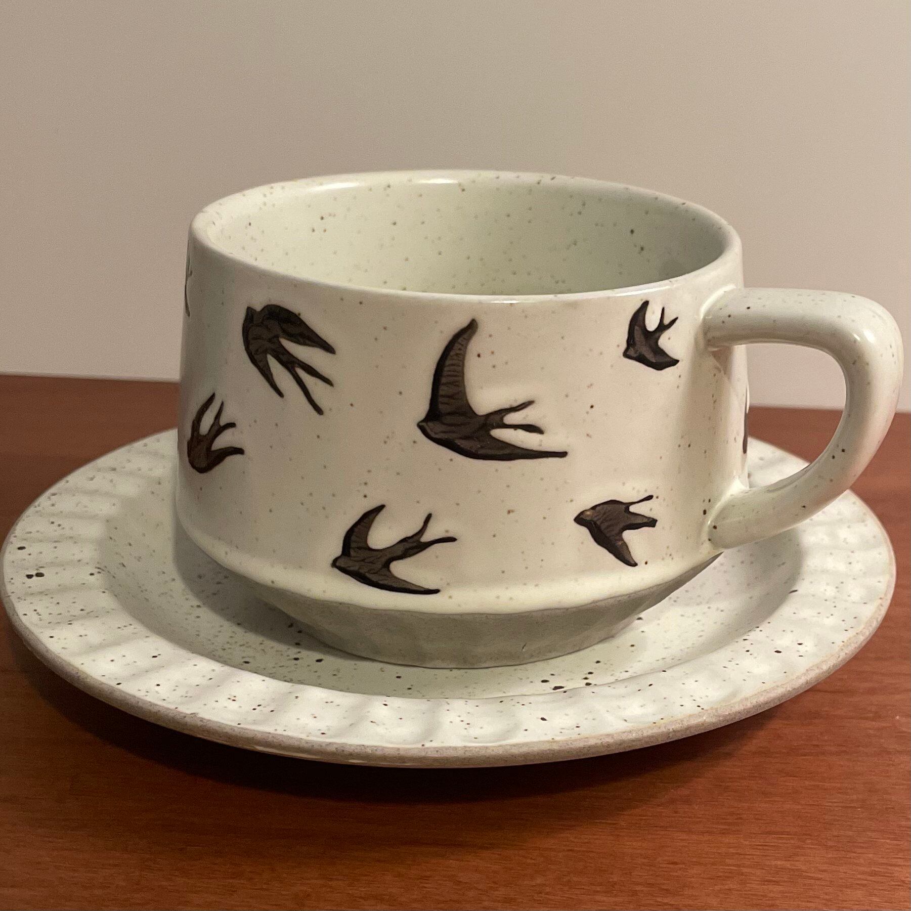 アンティーク カフェ風 マグカップ&ソーサー コーヒーマグ 鳥 ツバメ