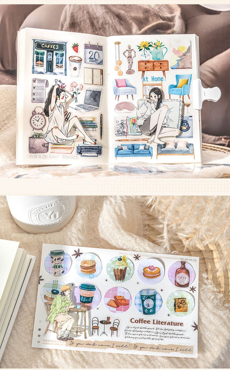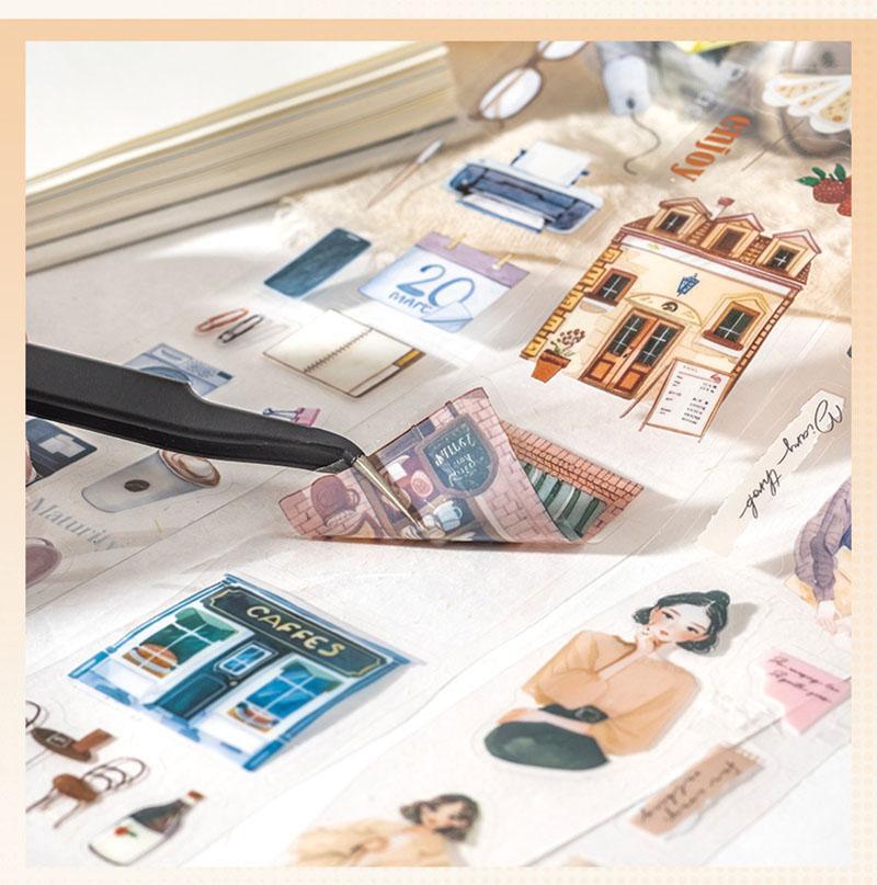 デコ/手帳デコ/シールデコ/日記/手帳/日記デコ/ジャーナル/コラージュ/シール/ステッカー/デイリー/マンスリー/カフェ/ロールステッカー/PETシール/クリアステッカー/海外文具/海外シール