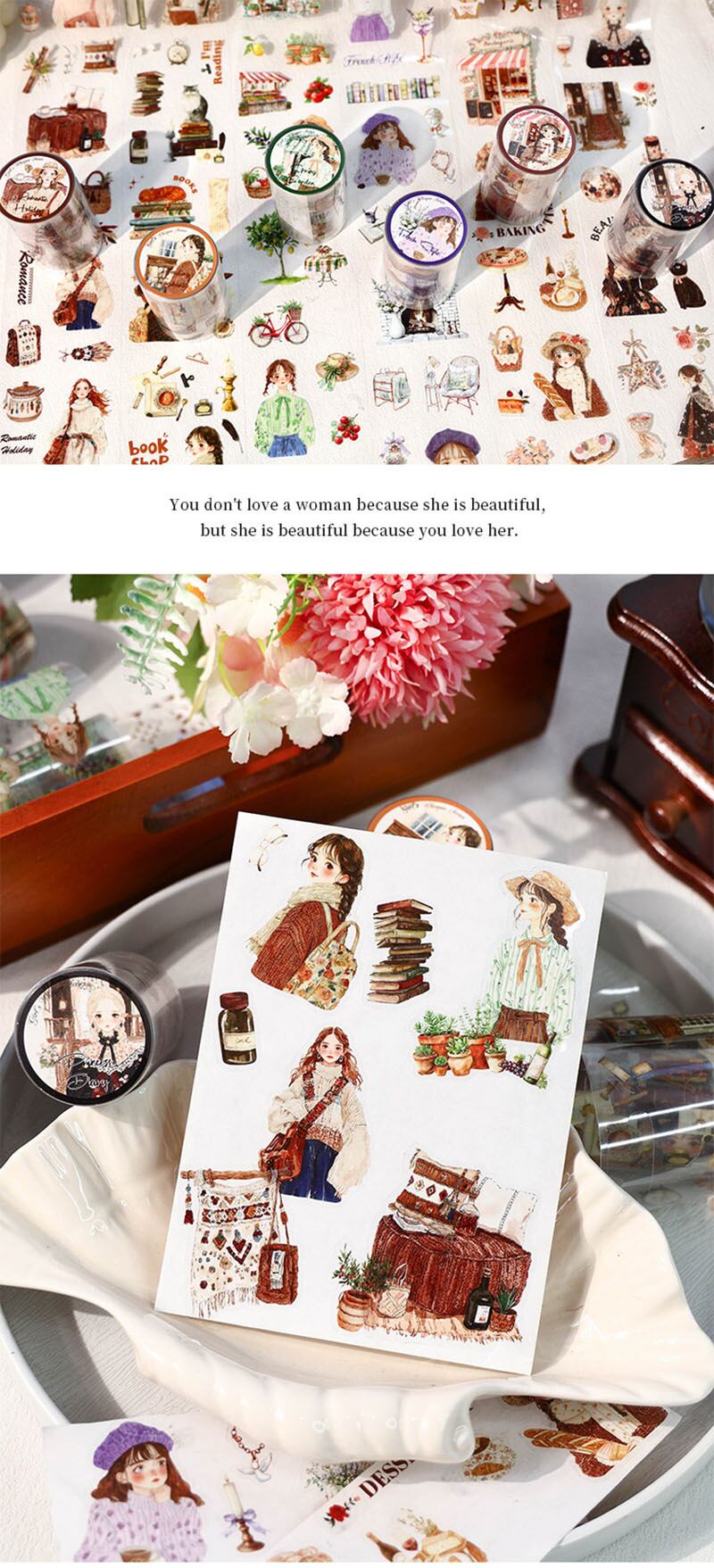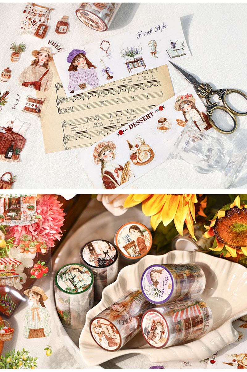 デコ/手帳デコ/シールデコ/日記/手帳/日記デコ/ジャーナル/コラージュ/シール/ステッカー/デイリー/マンスリー/カフェ/ロールステッカー/女の子/ガーリー/PETシール/クリアステッカー/海外文具/海外シール