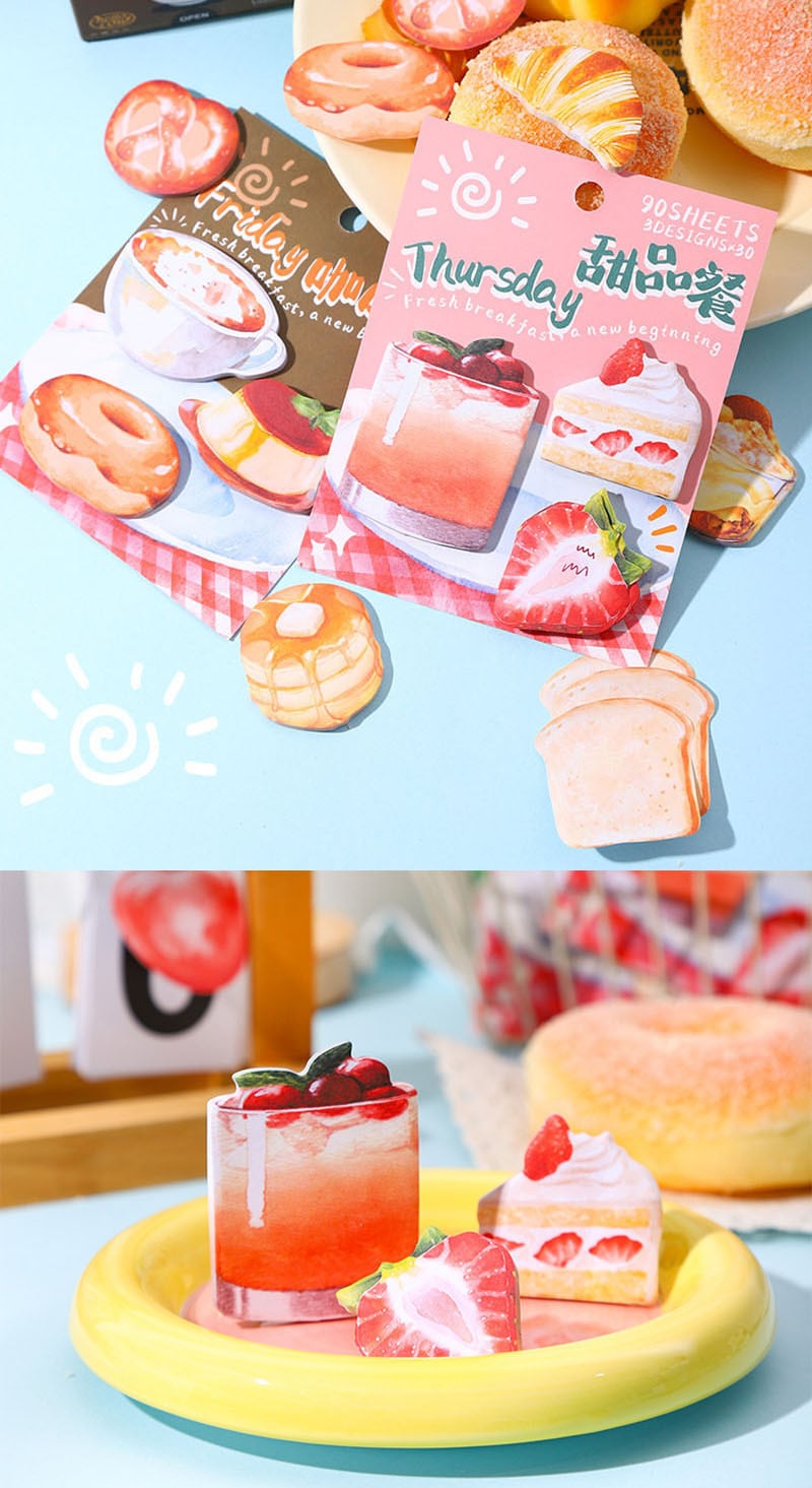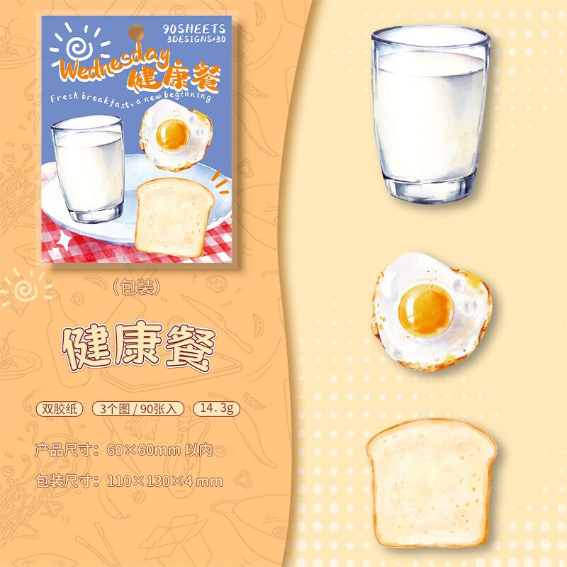 1週間のモーニングメニューをモチーフにしたダイカット付箋です。