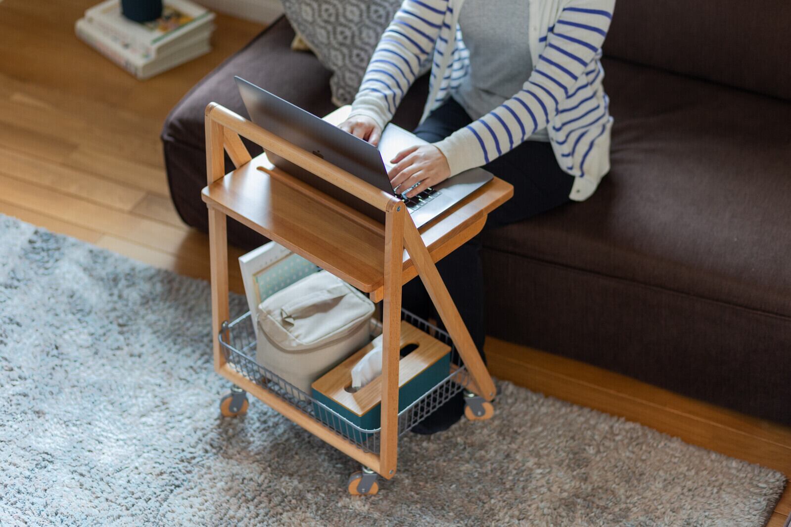 ソファ前、ベッドサイドへ移動させてサイドテーブルとしても使いやすい!