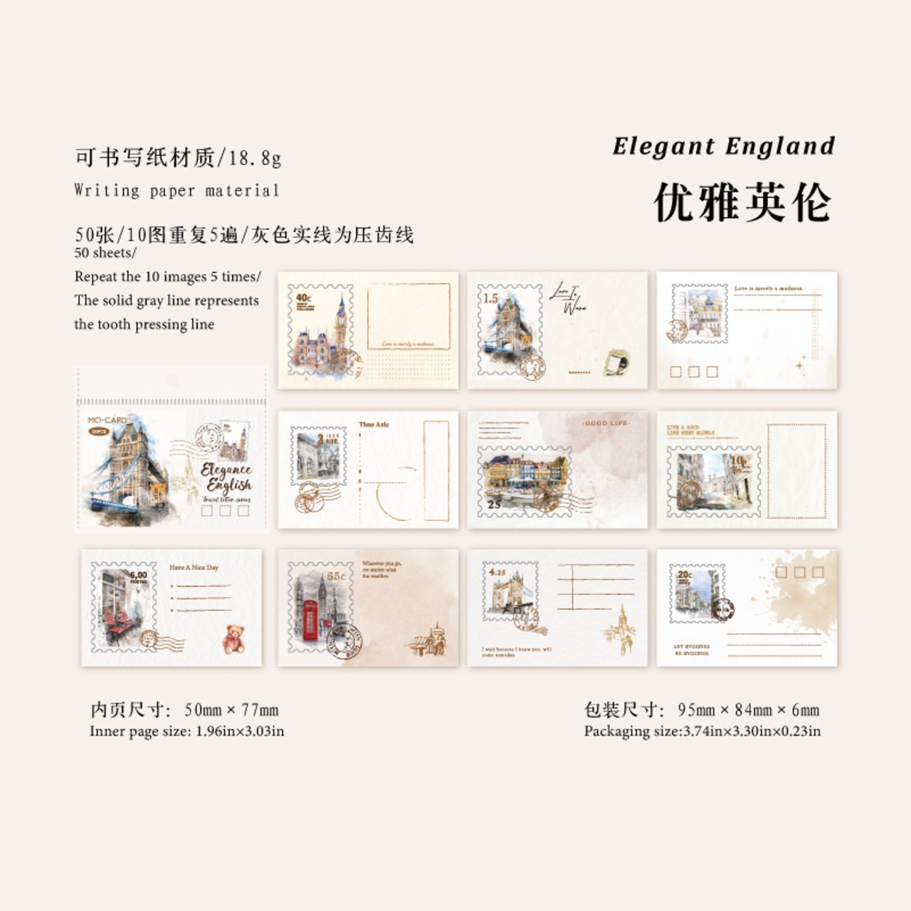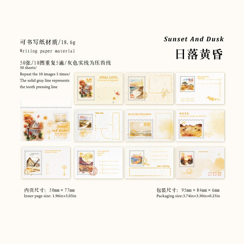 切手が貼られたはがきのようなデザインがおしゃれなミニメモです。