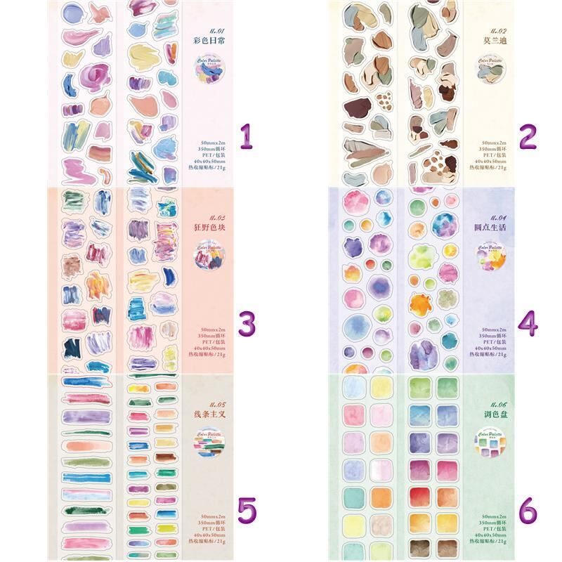 コラージュのベースやアクセントとして使いやすい、絵具モチーフのPETシールです。