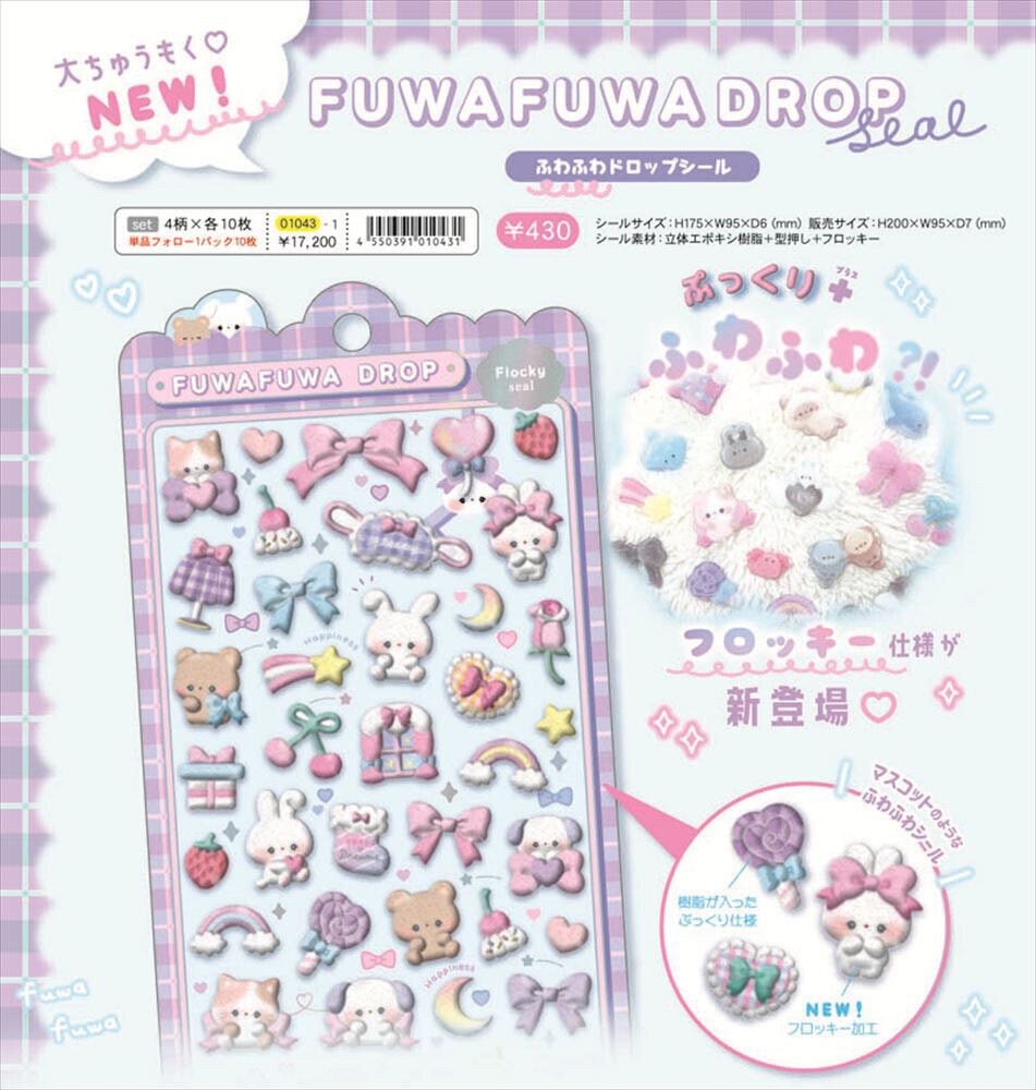 ふわふわドロップシール ねこねこふわふわ フロッキー ぷっくり アニマル