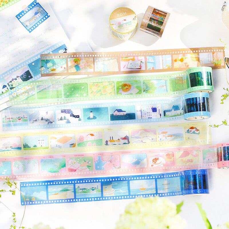クリアテープ/PETテープ/petテープ/マスキングテープ/デコ/コラージュ/淡色/透明/手帳デコ/ジャーナル/風景/フィルム/おしゃれ/レトロ/夏/日常/暮らし/ビージーエム