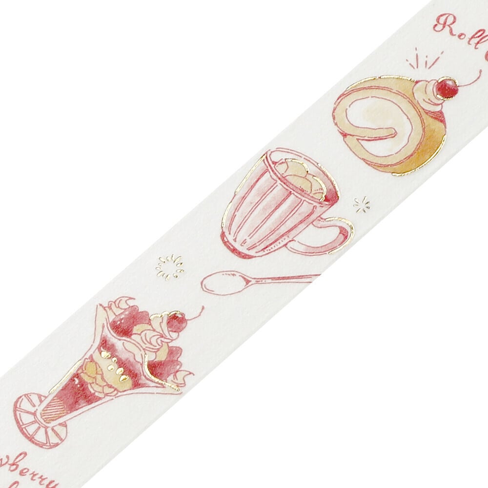 涼しげなカフェメニューのイラストがおしゃれな箔押しテープです。