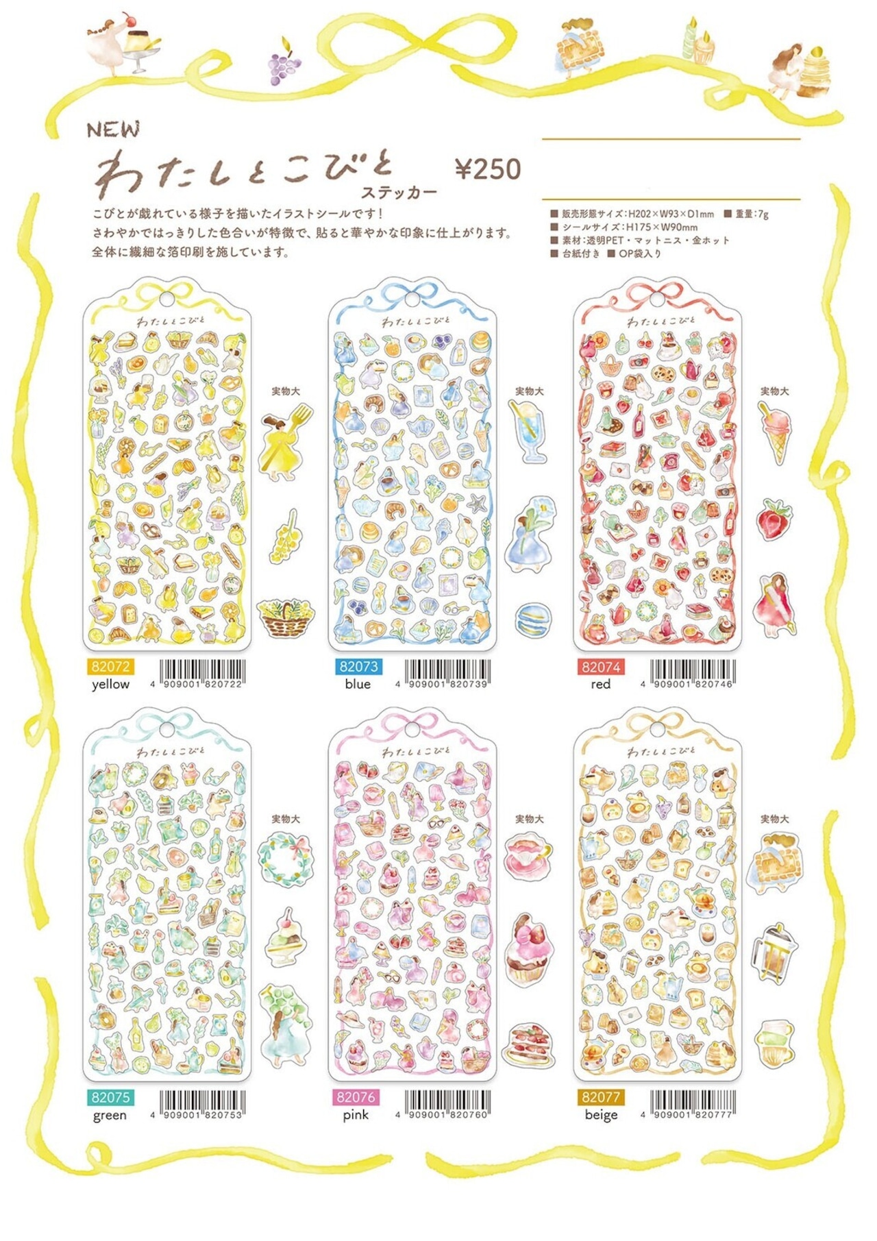 小さな女の子と花やカフェスイーツなど、小さなモチーフを集めたおしゃれなステッカー。