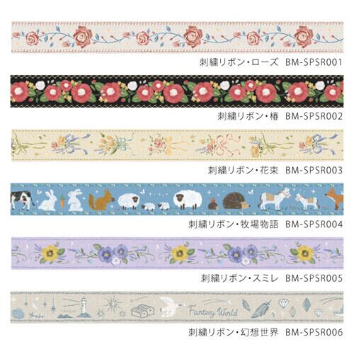 鳥や海が描かれた、幻想的な刺繍リボン柄の箔押しマスキングテープ。