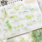 チェック柄と英字のPETステッカー。