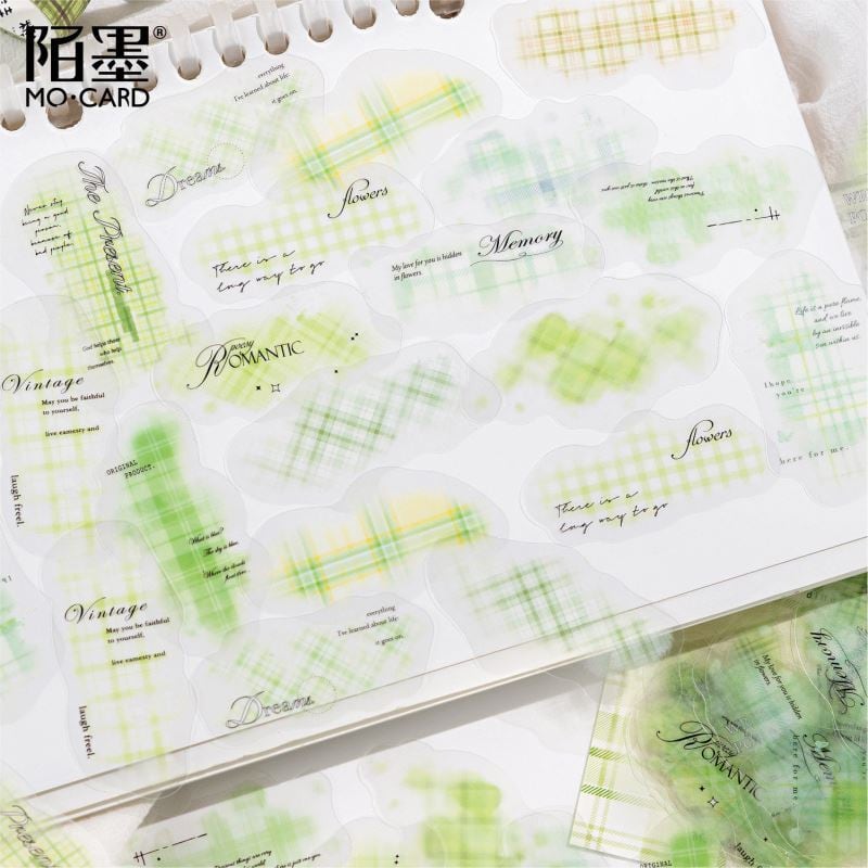 手帳デコ/文具/日記デコ/文具沼/海外シール/マスキングテープ/シール/ステッカー/クリアシール/PETシール/背景/コラージュ/ラッピング/チェック柄/ブラウン/海外風/ニュアンス/アンティーク