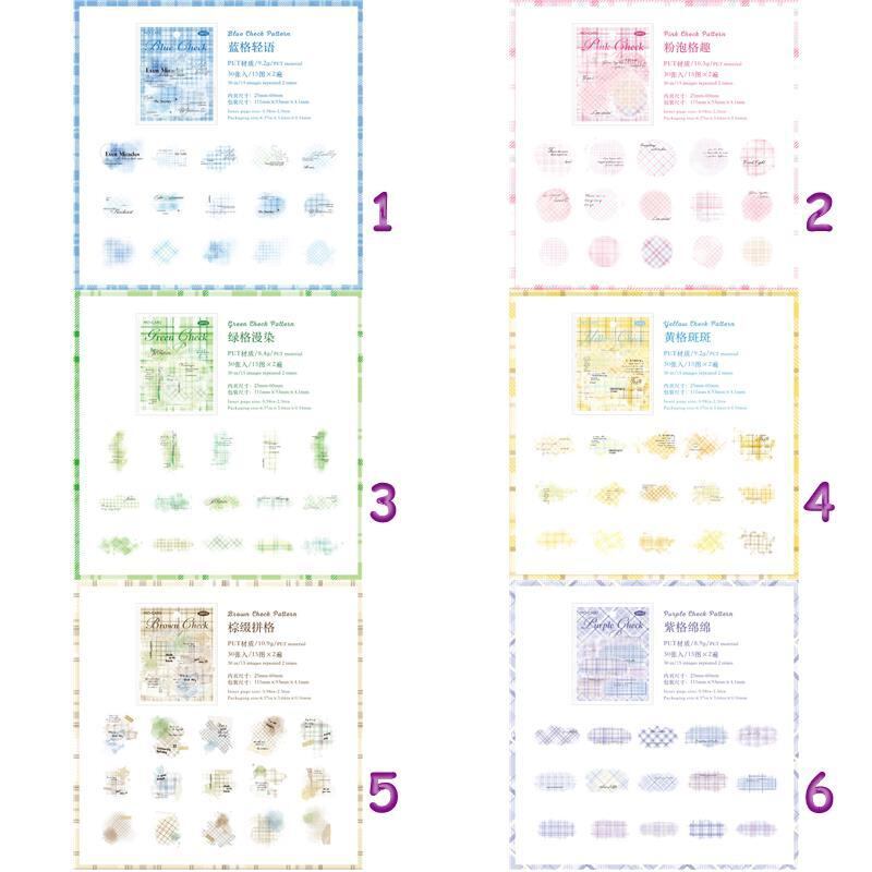 手帳デコ/文具/日記デコ/文具沼/海外シール/マスキングテープ/シール/ステッカー/クリアシール/PETシール/背景/コラージュ/ラッピング/チェック柄/パープル/海外風/ニュアンス/アンティーク