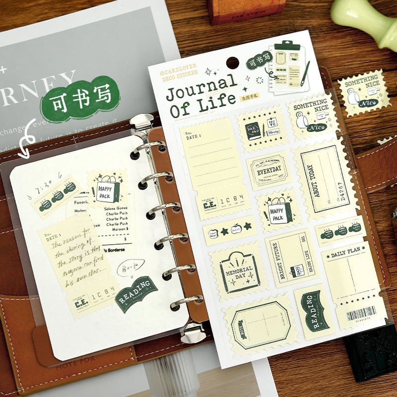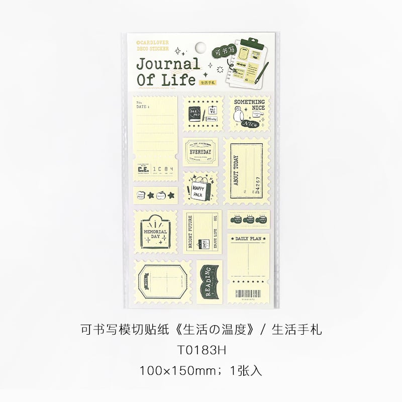 いろいろな形のタグや切手風のデザインがおしゃれなシールです。
