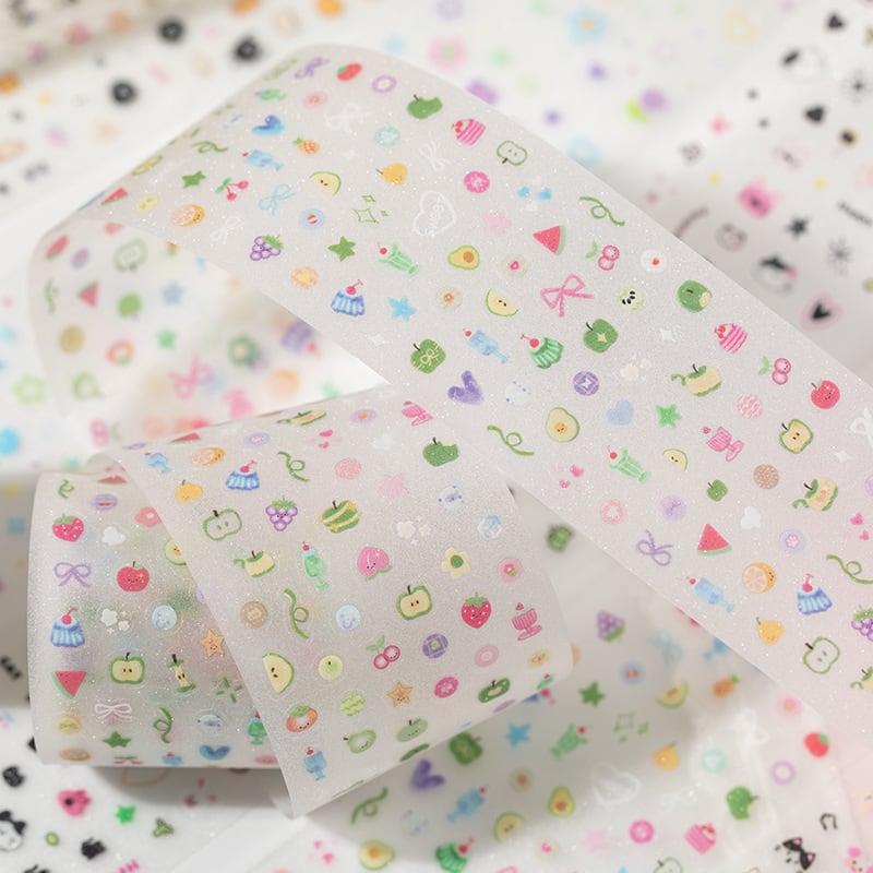 手帳デコ/文具/日記デコ/文具沼/海外シール/海外文具/マスキングテープ/シール/ステッカー/クリアシール/PETシール/PETステッカー/PET/コラージュ/ラッピング/海外風/プチシール/小さめシール/プチステッカー/カラフル/フルーツ/リボン/ソーダ/ゼリー/スイーツ/キャンディ/ラメ/キラキラ/パステル/韓国/推し活/日常/ライフ/暮らし/かわいい