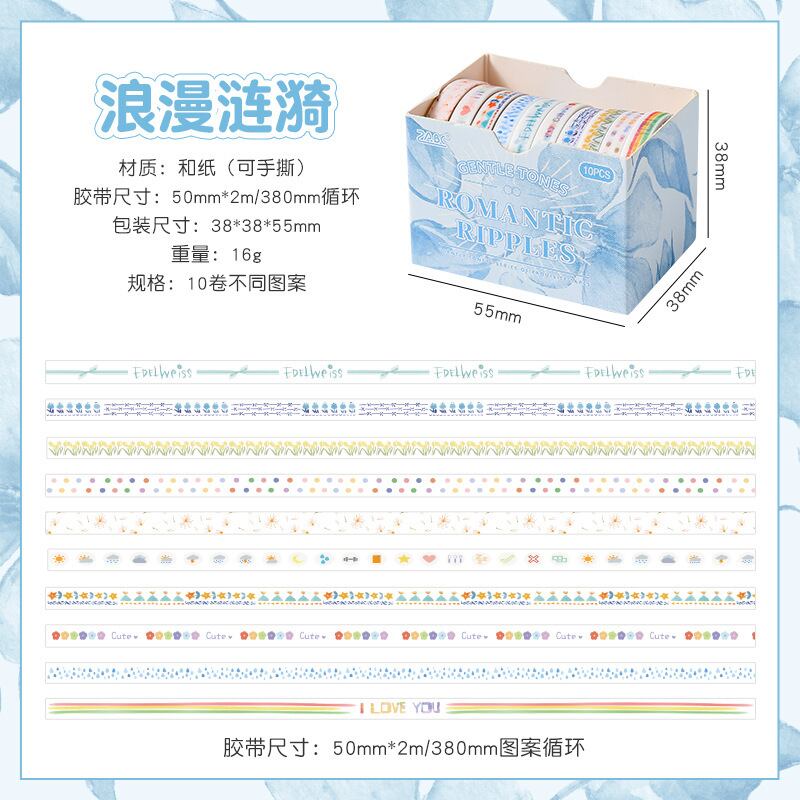細幅マスキングテープ 10巻セット romantic ripples Gentle Tones シリーズ