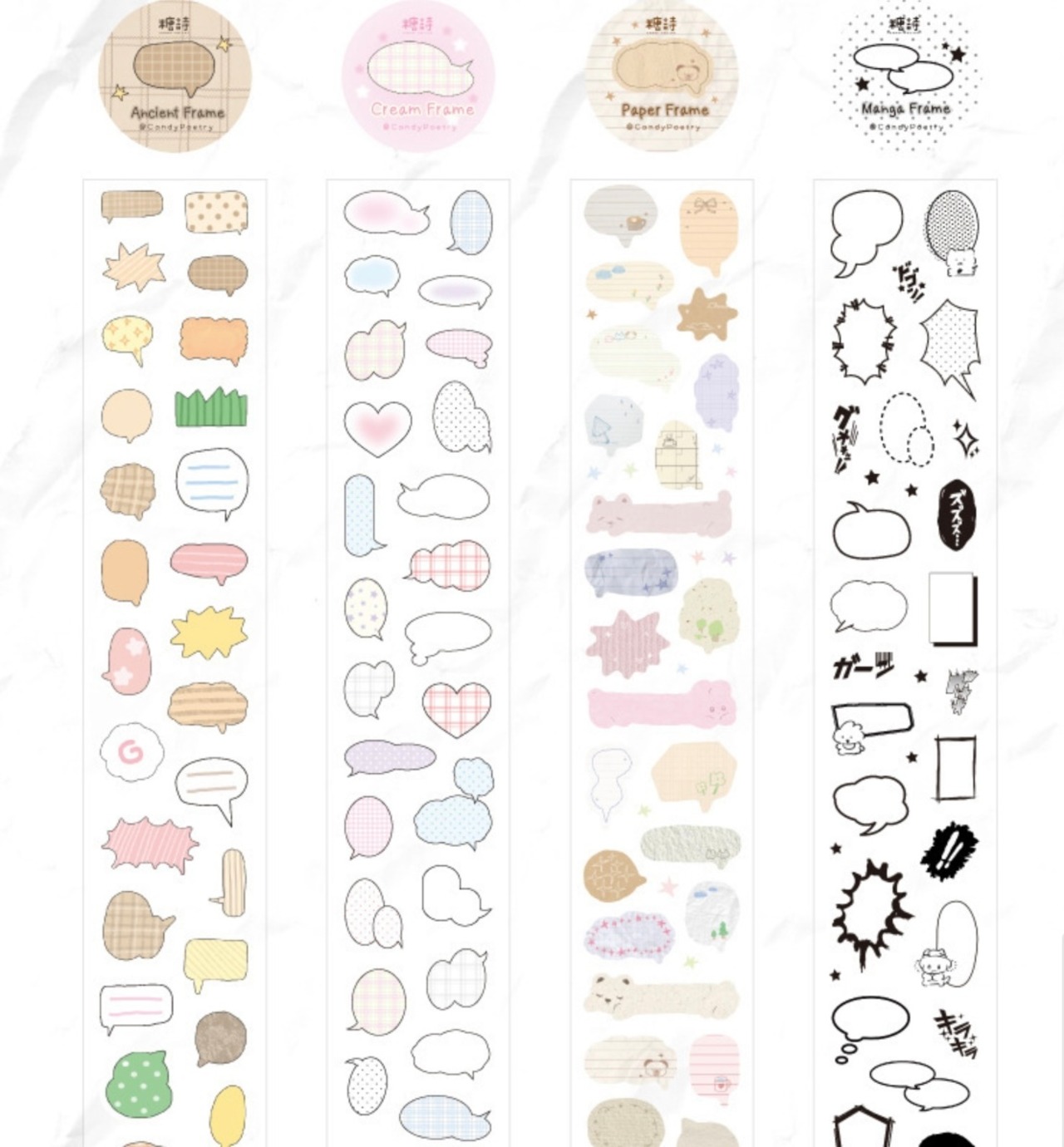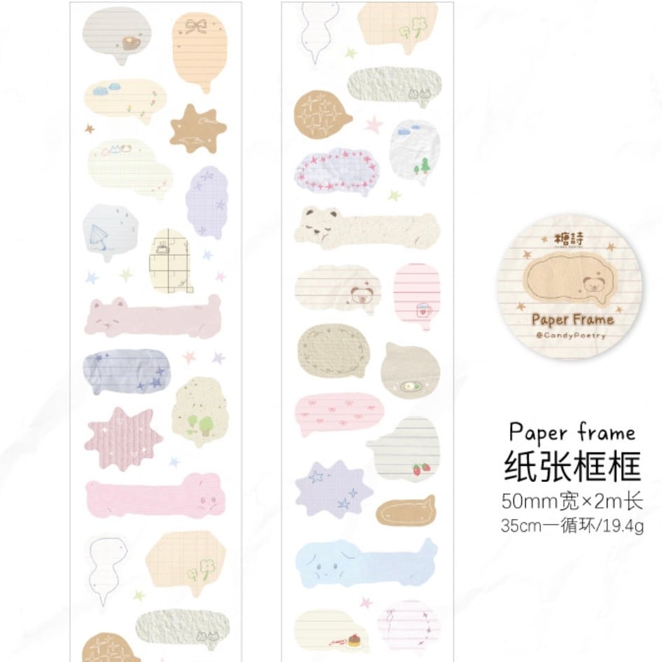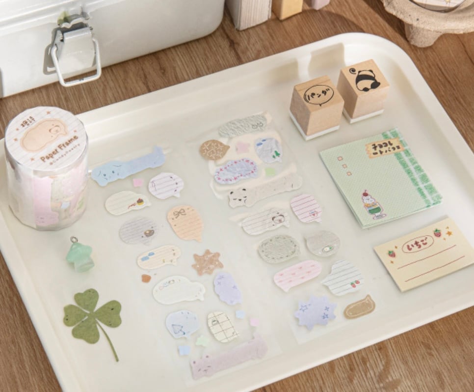 手帳デコ/文具/日記デコ/文具沼/海外シール/マスキングテープ/マステ/ロールシール/ロールステッカー/シール/ステッカー/コラージュ/ラッピング/カラフル/海外風/韓国/ニュアンス/おしゃれ/アンティーク/かわいい/パステル/アニマル/動物/くま/うさぎ/素材紙/フレーム/ふきだし/手描き/推し
