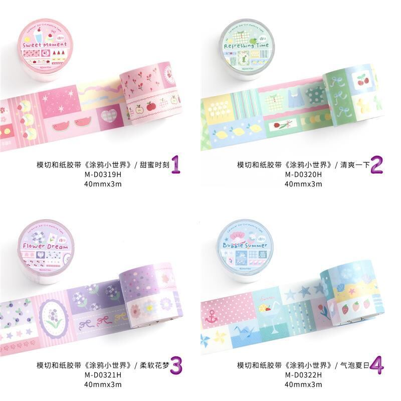 手帳デコ/文具/日記デコ/文具沼/海外シール/マスキングテープ/マステ/ロールシール/ロールステッカー/シール/ステッカー/コラージュ/ラッピング/淡色/カラフル/海外風/韓国/レトロ/夏/ニュアンス/おしゃれ/アンティーク/かわいい/パステル/ポップ/ソーダ/ガーリー/ベリー/フルーツ/リボン/フラワー/海/ブルー