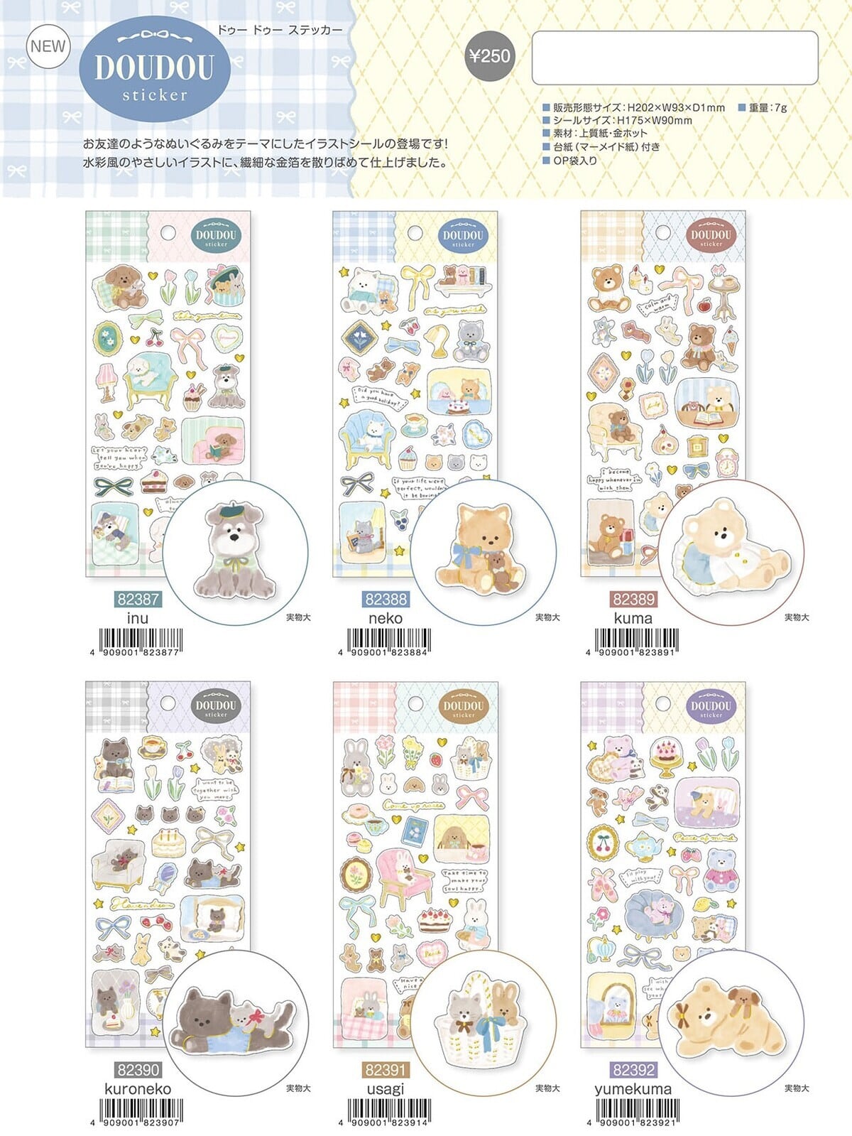 淡色/パステル/かわいい/アニマル/どうぶつ/箔押し/ドゥードゥー