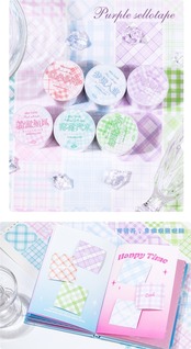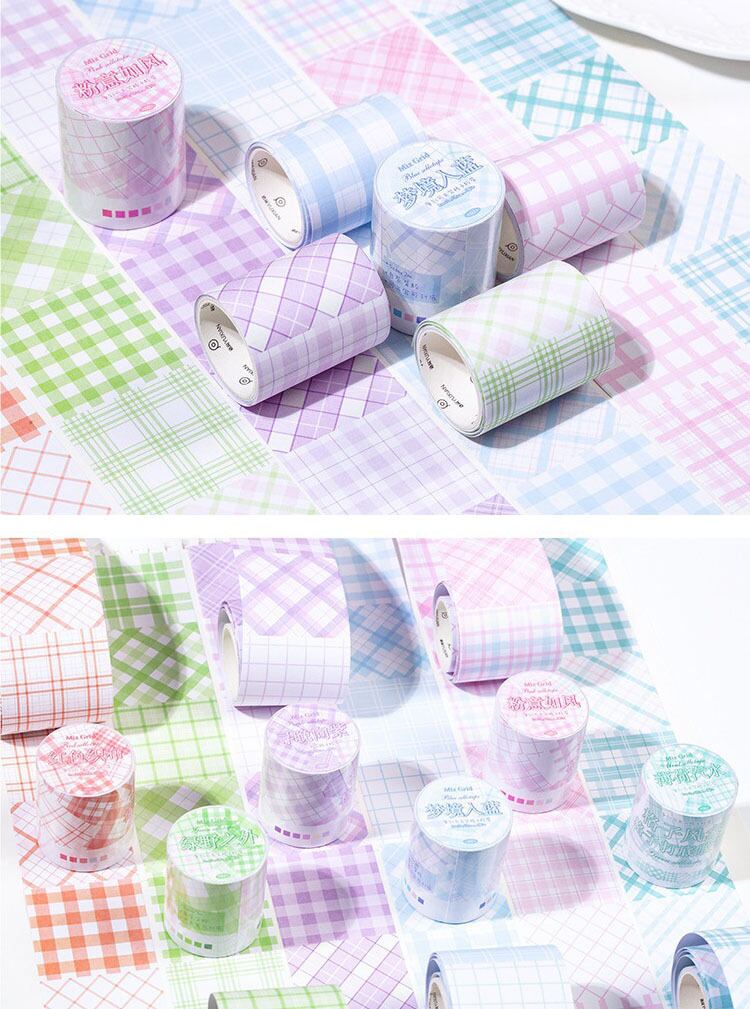 マスキングテープ/和紙テープ/マステ/デコ/コラージュ/淡色/パステル/手帳デコ/日記デコ/ジャーナル/ガーリー/おしゃれ/チェック/スクエア/ロールシール/ステッカー/ふせん/付箋/海外文具