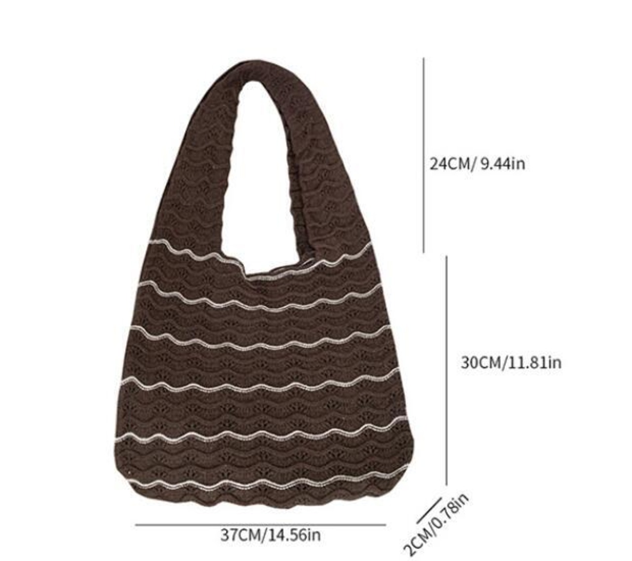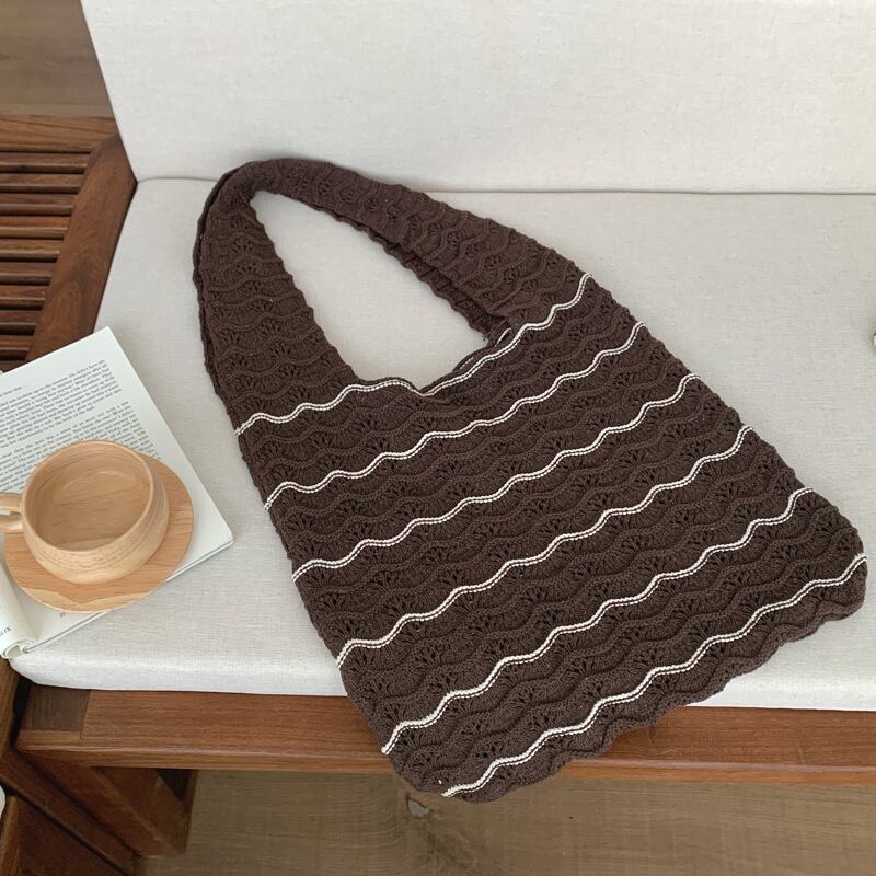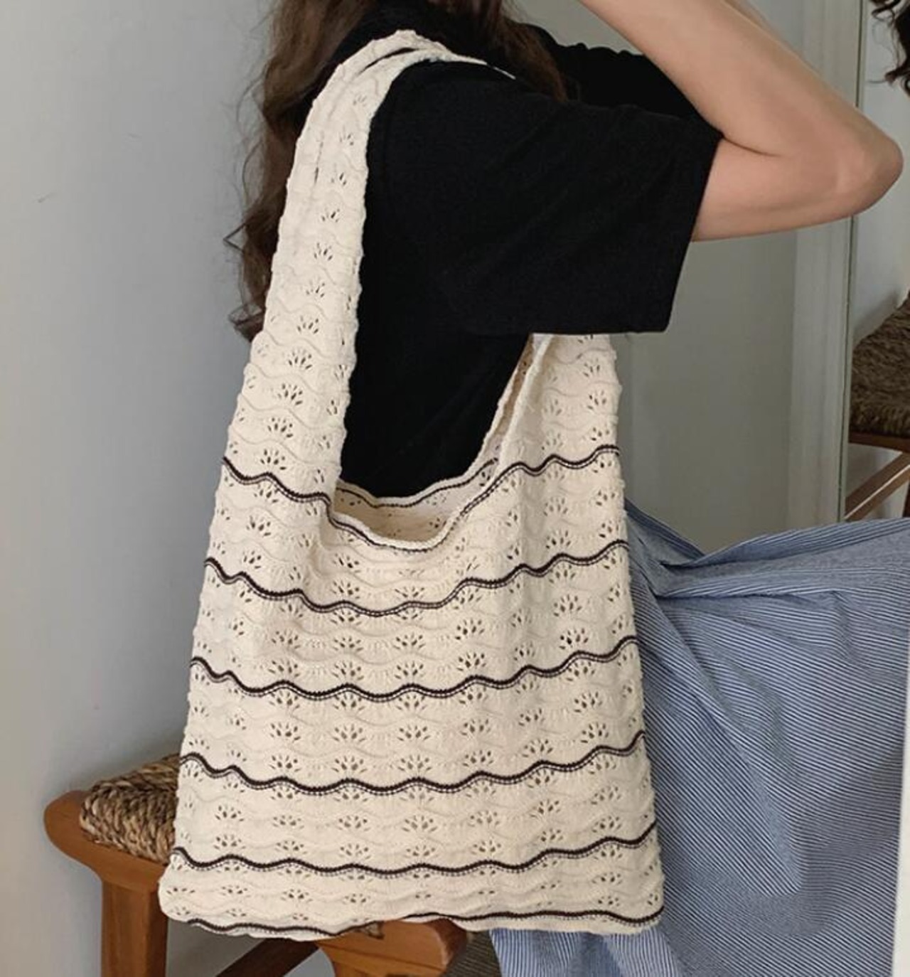 カジュアルに使えるウェーブのデザインがおしゃれなニットバッグ。