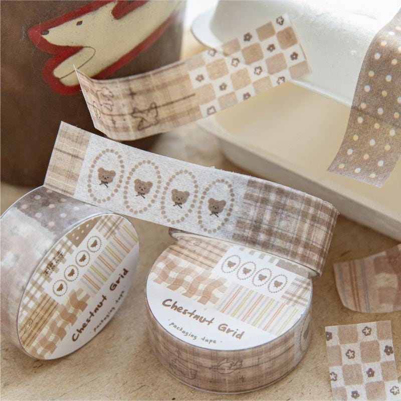 手帳デコ/文具/日記デコ/文具沼/海外シール/海外文具/淡色/マステ/かわいい文具/和紙テープ/マスキングテープ/マステ/チェック柄/シール/ステッカー/かわいい/紙もの/テープ/くま/ブラウン/ピンク