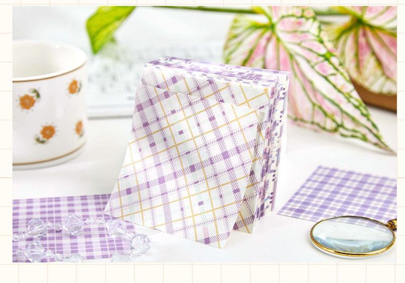 海外文具/ペーパー/デコ素材/手帳デコ/コラージュ/チェック/ガーリー/背景紙/チェック柄/淡色/パステル/スクエア/メモ/紙もの