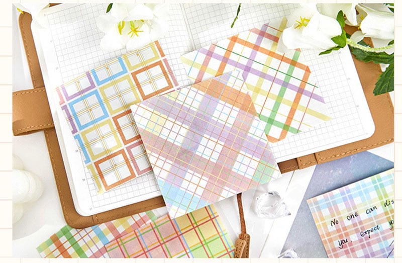 海外文具/ペーパー/デコ素材/手帳デコ/コラージュ/チェック/ガーリー/背景紙/チェック柄/淡色/パステル/スクエア/メモ/紙もの