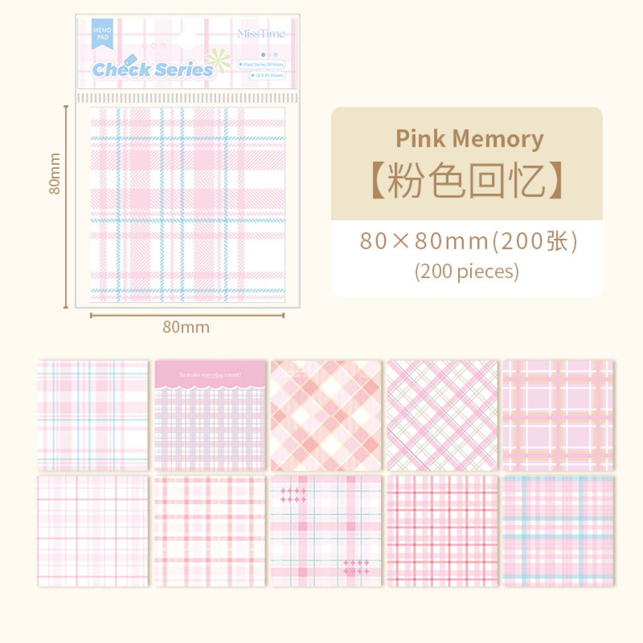 海外文具/ペーパー/デコ素材/手帳デコ/コラージュ/チェック/ガーリー/背景紙/チェック柄/淡色/パステル/スクエア/メモ/紙もの