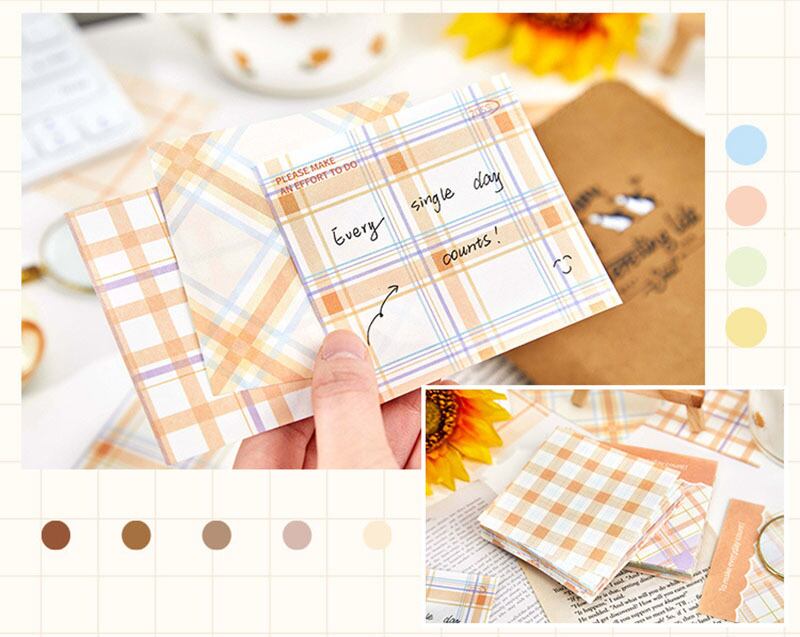 海外文具/ペーパー/デコ素材/手帳デコ/コラージュ/チェック/ガーリー/背景紙/チェック柄/淡色/パステル/スクエア/メモ/紙もの