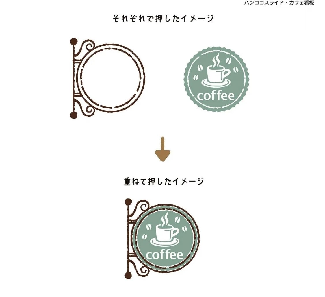 2色2柄のはんこを重ねて押せるスタンプのセット。