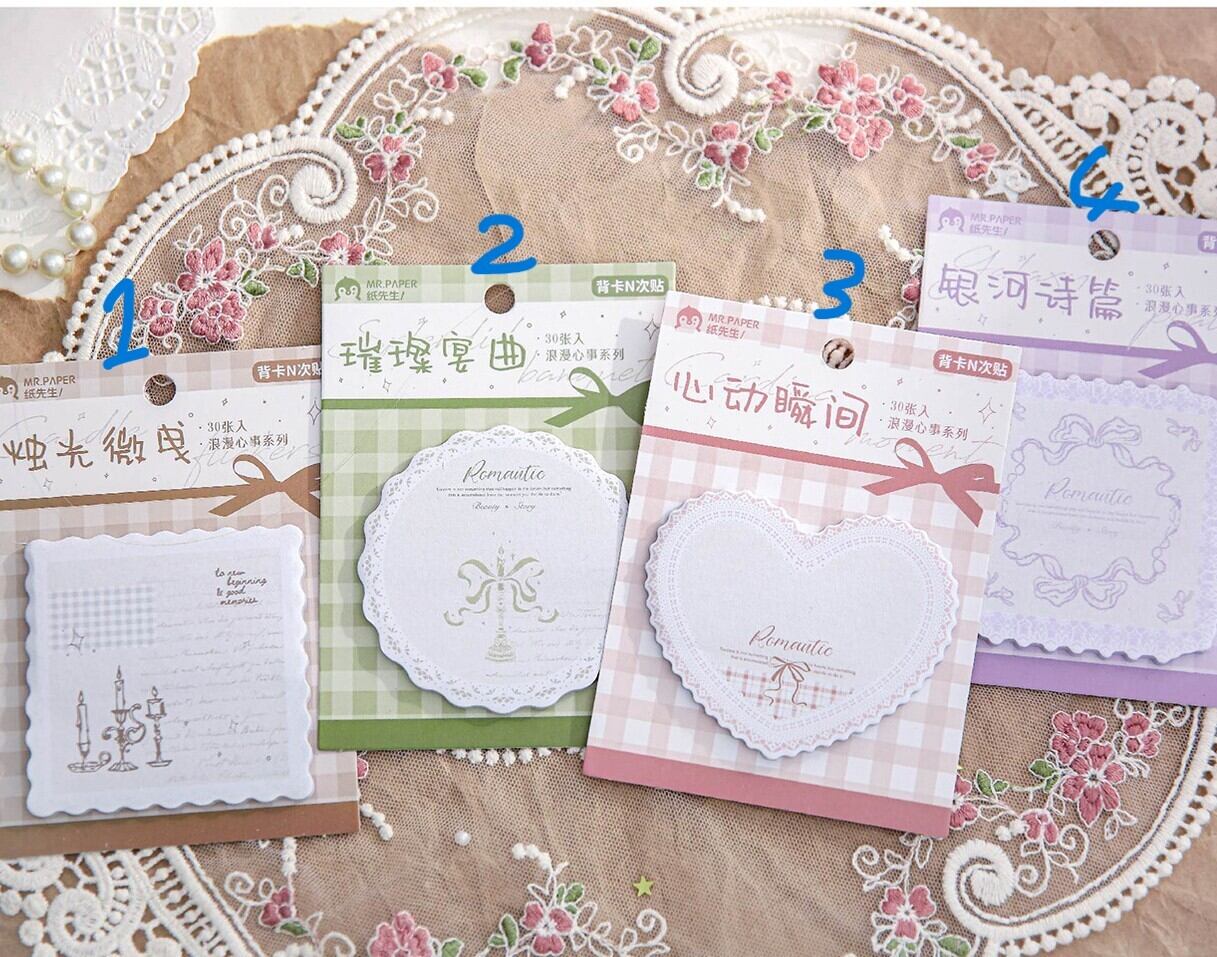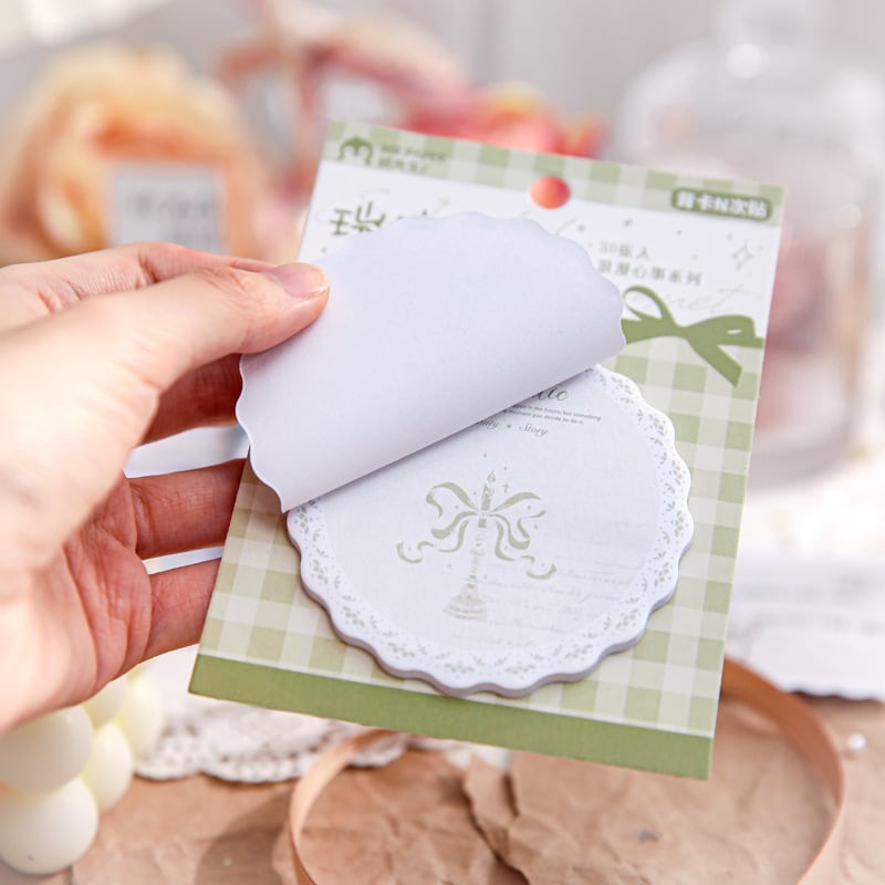 レース風のあしらいが素敵な、使いやすいサイズのダイカットふせんです。