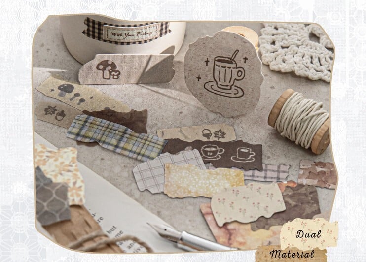 手帳デコ/文具/日記デコ/文具沼/海外シール/シール/フレークシール/ステッカー/コラージュ/ラッピング/海外風/ガーリー/アンティーク/おしゃれ/パステル/淡色/紙素材/日常/暮らし/かわいい/布/クロス/チェック柄/花柄