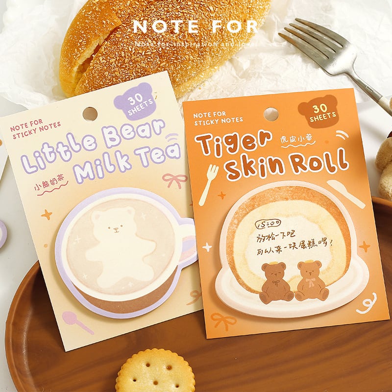 手帳デコ/文具/日記デコ/文具沼/紙もの/海外文具/コラージュ/ジャーナル/ラッピング/パステル/淡色/スクエア/ペーパー/メモ/メモ帳/ふせん/付箋/くま/コーヒー/スイーツ/ブラウン