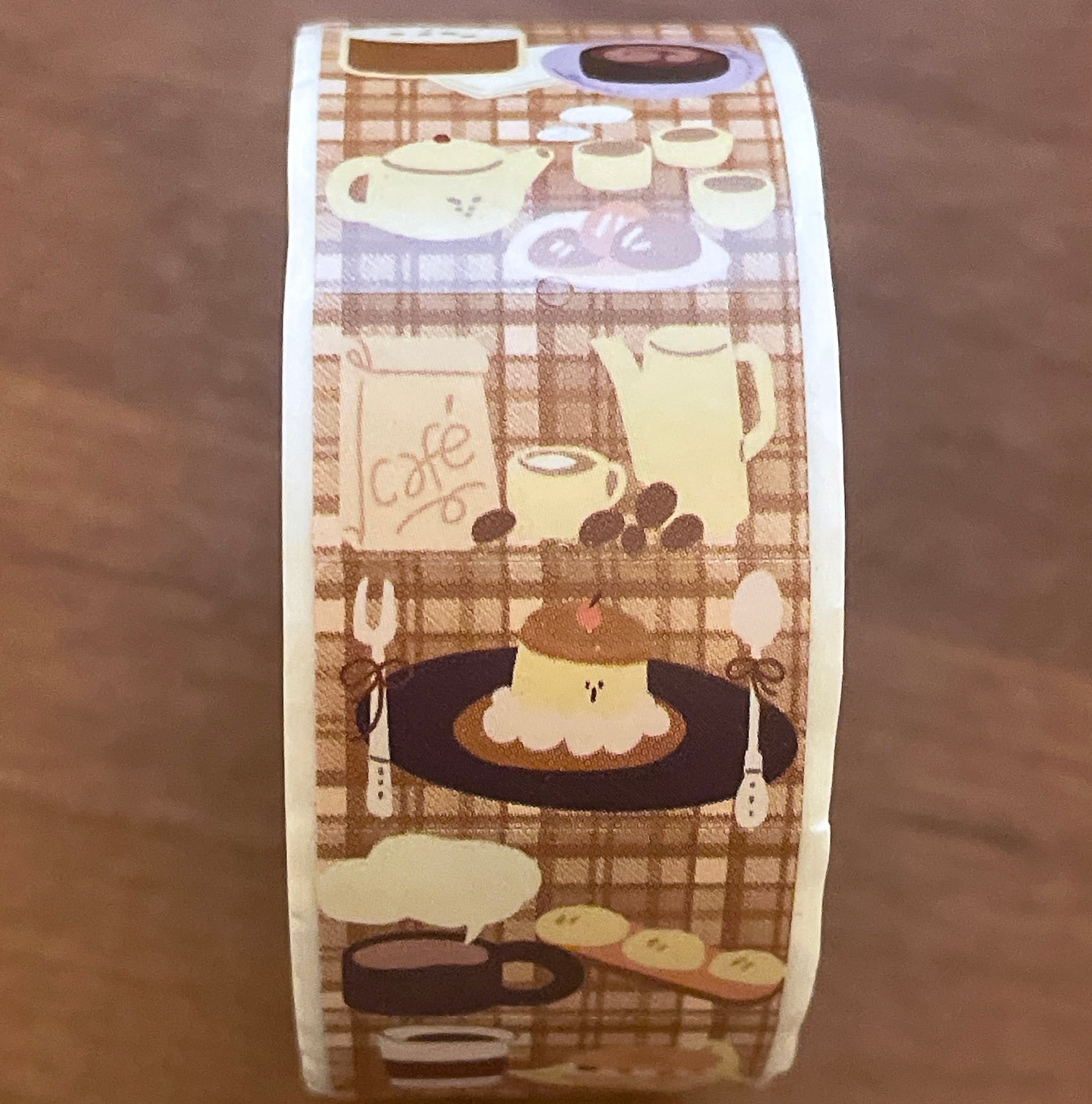 ブラウンチェック・カフェモチーフデザインのラベラーシール。