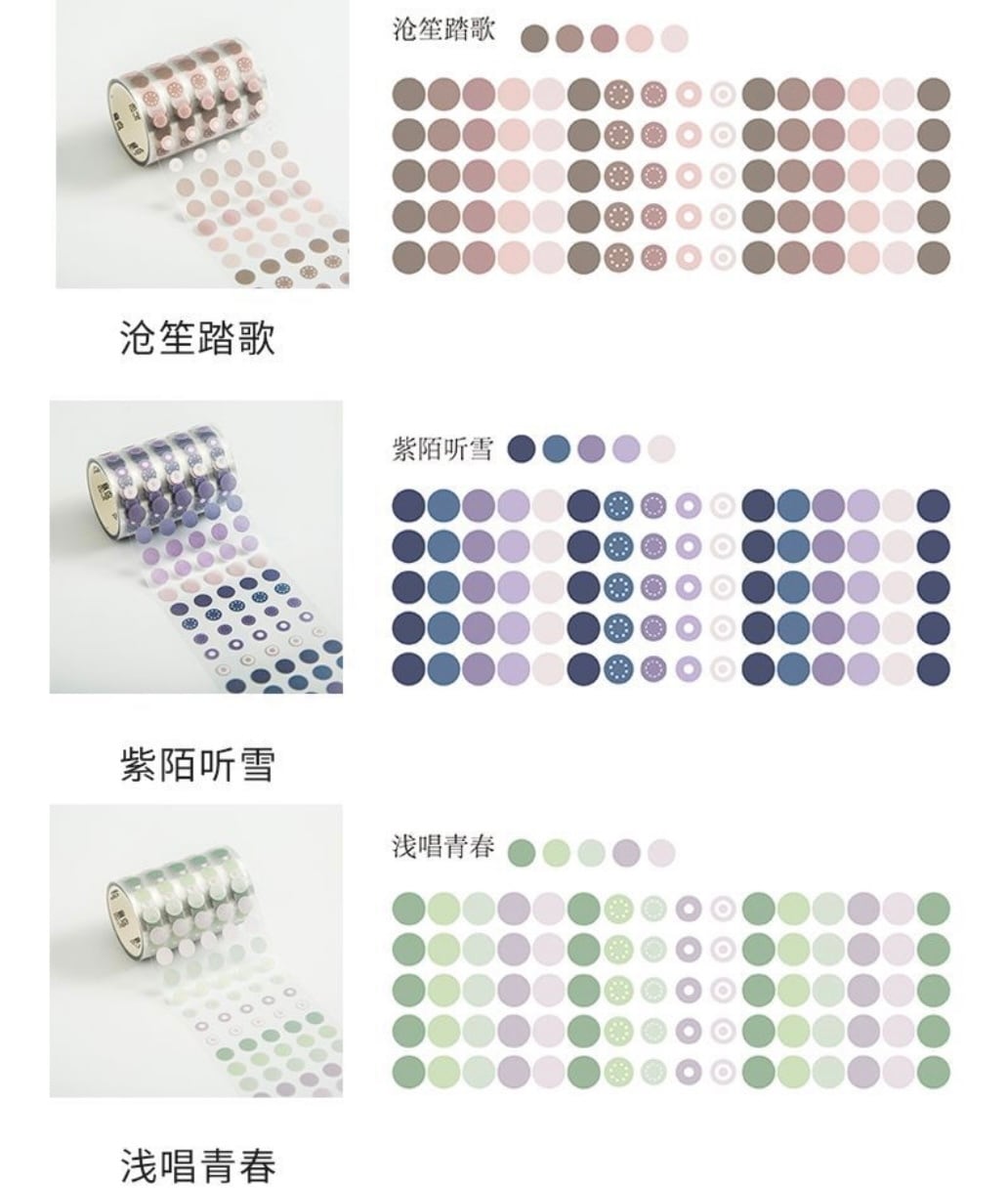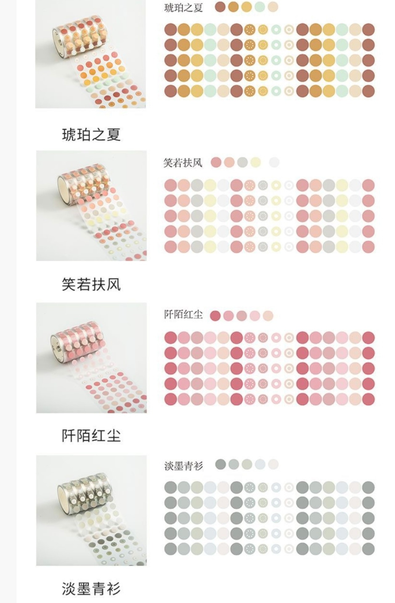 マスキングテープ/マステ/デコ/コラージュ/淡色/パステル/手帳デコ/日記デコ/ジャーナル/ガーリー/おしゃれ/ロールシール/ステッカー/ドット/ドットシール/丸シール/海外シール/紙もの/カラーパレット/海外文具