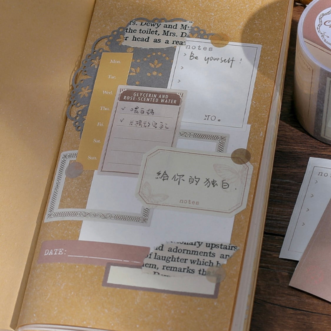 手帳デコ/文具/日記デコ/文具沼/紙もの/海外文具/コラージュ/ジャーナル/ラッピング/パステル/淡色/海外マステ/マステ/デコ素材/海外風/シール/ステッカー/ロールステッカー/アンティーク/タグ/ラベル/フレーム/メモ/ふせん/付箋/レトロ/チケット/ラッピング/レター/手紙/宛名