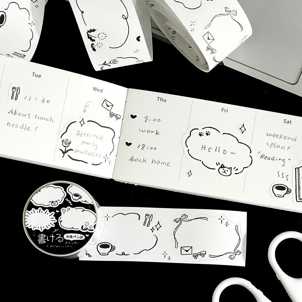 それぞれ7~9種類のデザインが入った、書き込めるステッカーロール。