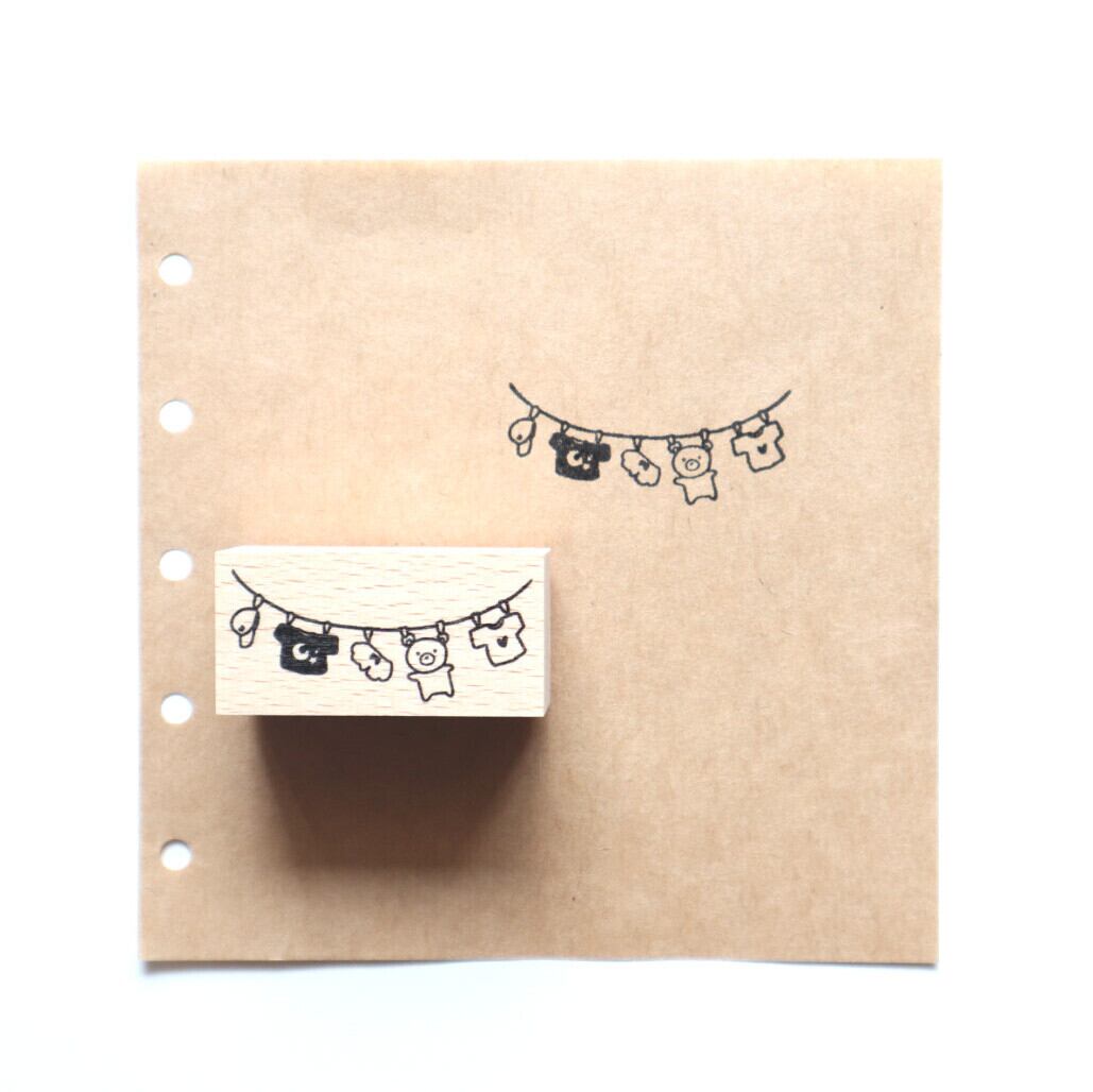 洗濯物と一緒に干されるくまがかわいいはんこ。