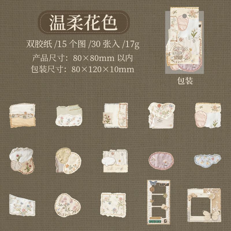 手帳デコ/文具/日記デコ/文具沼/海外シール/シール/フレークシール/ステッカー/コラージュ/ラッピング/海外風/ガーリー/おしゃれ/パステル/淡色/紙素材/ワッペン/布/クロス/Denim/花柄/カフェ/アンティーク/パッチワーク