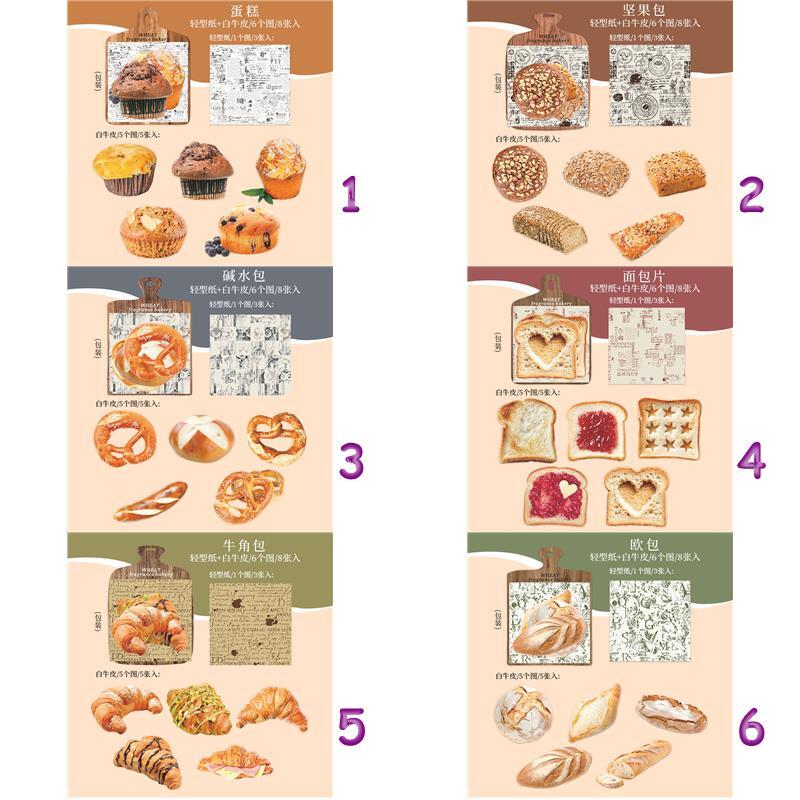 クラフト紙素材の美味しそうなシールと、パンを包むデザインペーパー風の薄紙ペーパーがセットになっています。