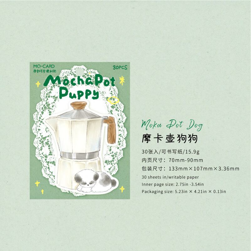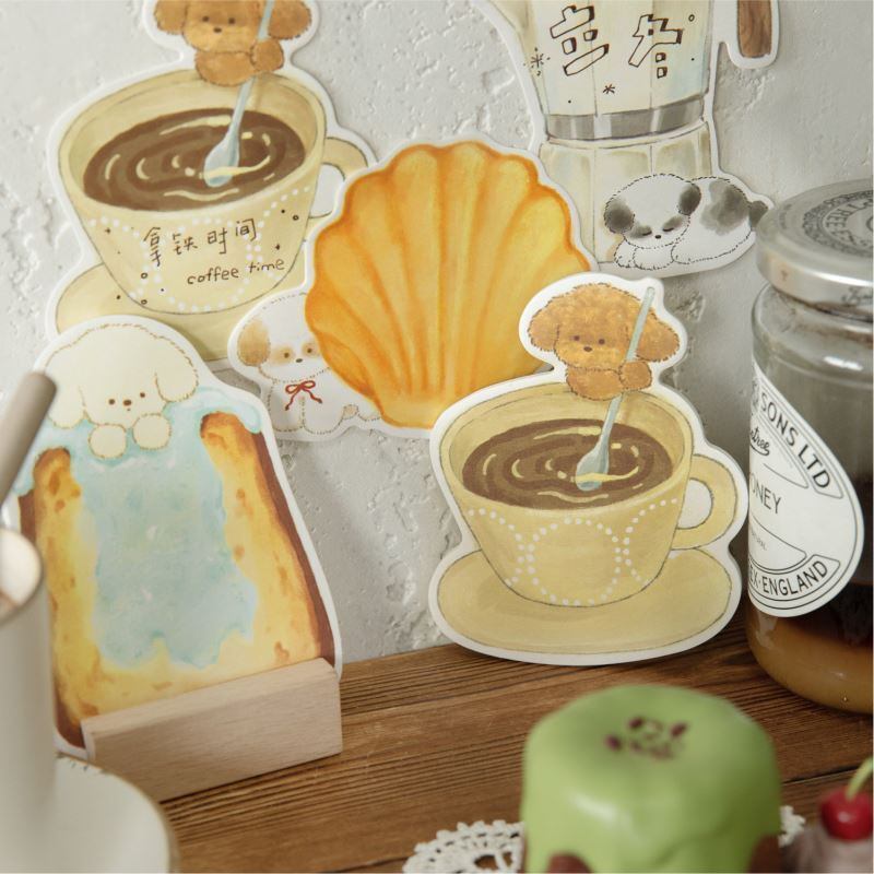 カフェタイム&小さな子犬モチーフが可愛いダイカットふせん。