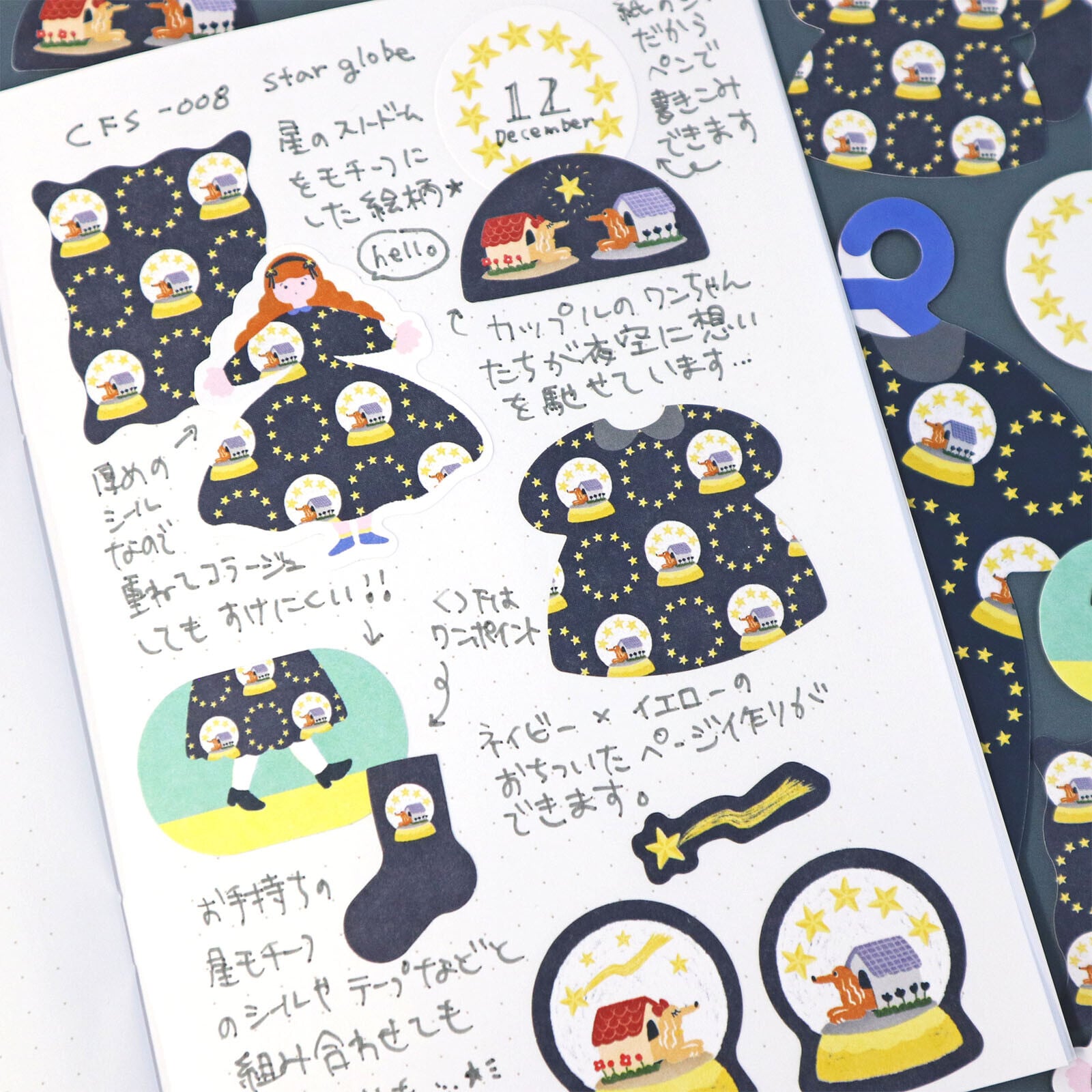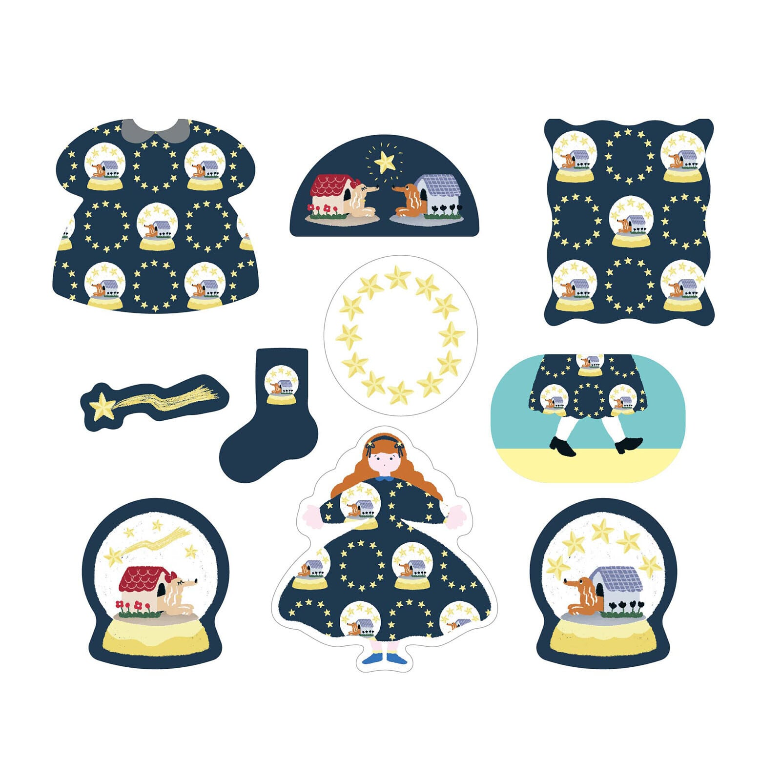 ステッカー/シール/フレークシール/箔押し/デコ/コラージュ/淡色/手帳デコ/ジャーナル/紙もの/アンティーク/女の子/人物/テキスタイル/星空/スノードーム/星/宇宙/ブラック/モノクロ/シック/フルーツ/ガーリー/テキスタイル/かわいいシール
