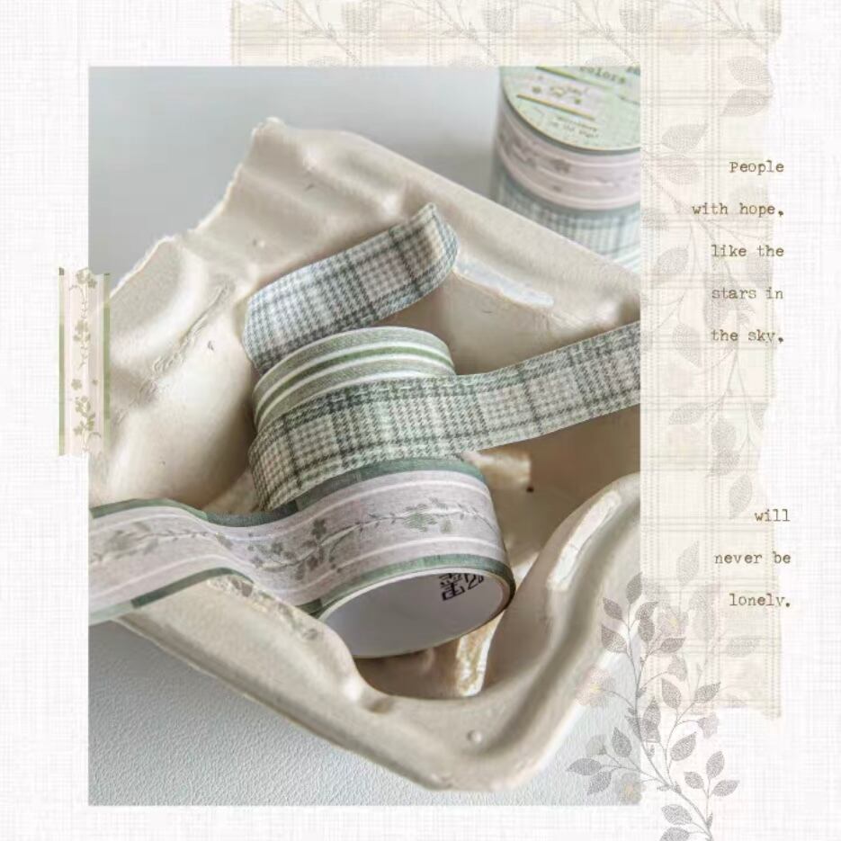 手帳デコ/文具/日記デコ/文具沼/紙もの/海外文具/コラージュ/ジャーナル/ラッピング/パステル/淡色/海外マステ/マステ/デコ素材/海外風/シール/ステッカー/ロールステッカー/アンティーク/マスキングテープ/ファブリック/冬/チェック柄