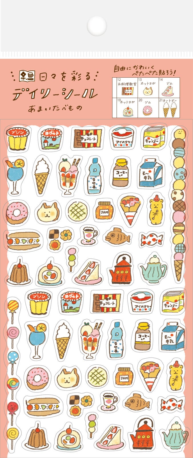文具/デコ/コラージュ/淡色/手帳デコ/日記デコ/ジャーナル/シール/ステッカー/スイーツ/パン/プリン/アイス/チョコレート/かわいい/スケジュール/食べもの/ピンク/PETシール/クリアシール
