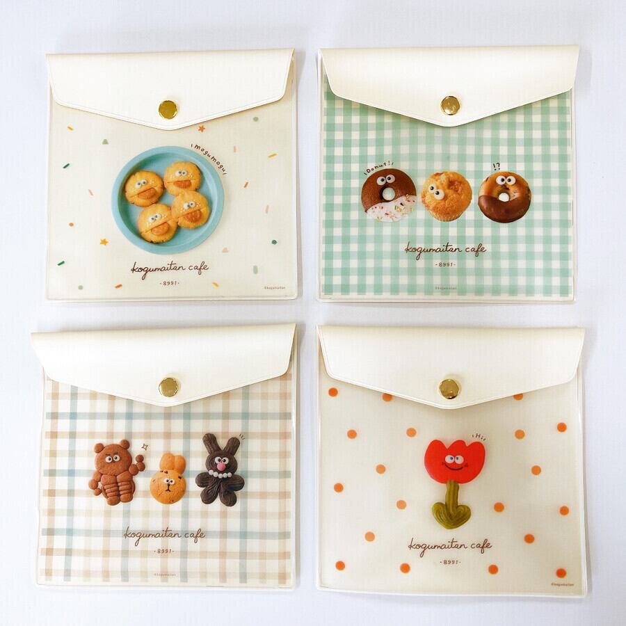 文具/手帳/手帳アクセサリー/マット/バッグ/収納/雑貨/小物入れ/淡色/ジャーナル/こぐまいたんカフェ/かわいい/チェック柄/ポーチ/ファイル/カフェ/クッキー/ドーナツ/キャラクター/コラボ