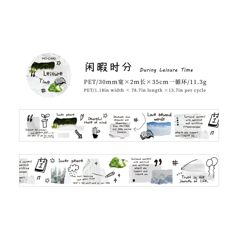 コラージュ風デザインが映える、淡いカラーリングのデザインPETテープ。